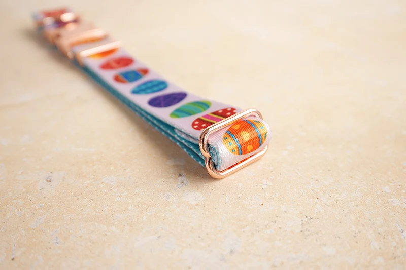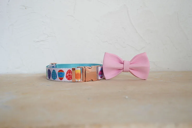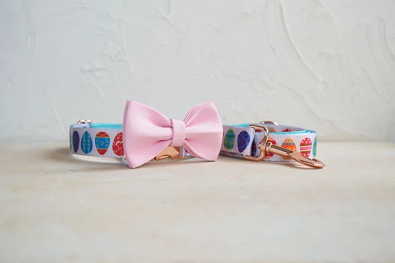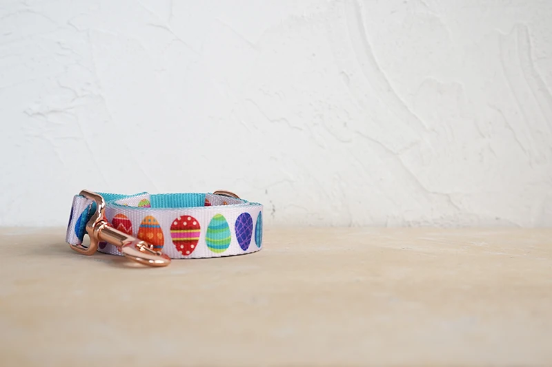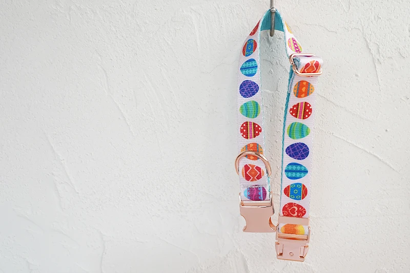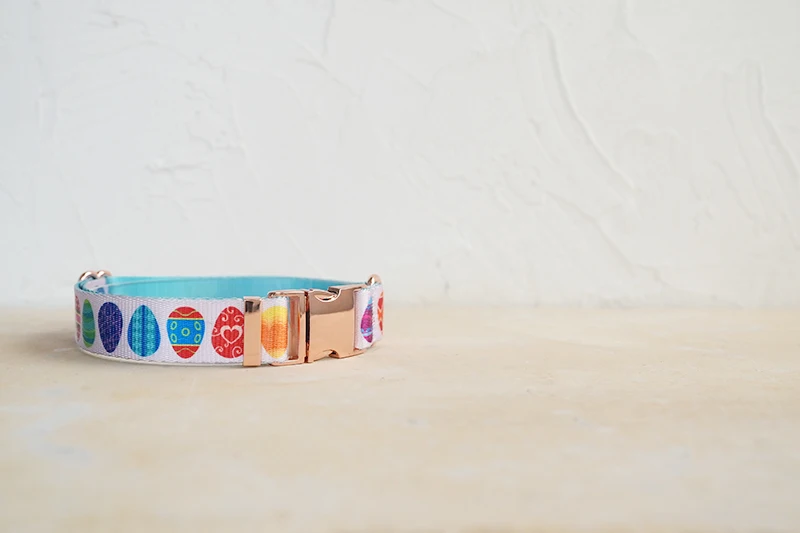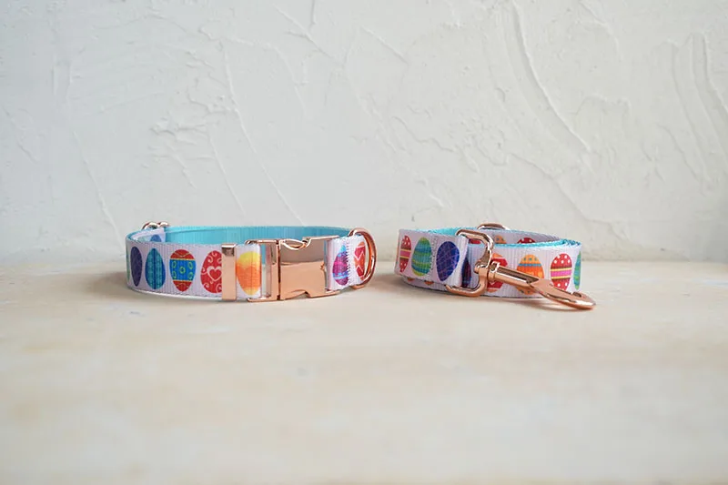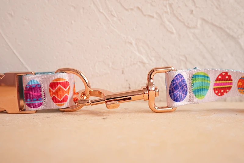 Juego de perros de diseño único de PLATTCO con estampado de HUEVOS DE PASCUA FELIZ con hebilla de oro rosa de alta calidad 5 tamaños PDC341RG y PDL341RG