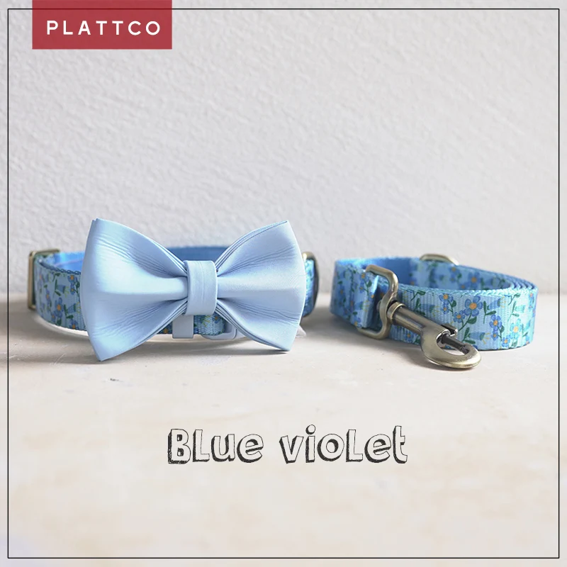 PLATTCO Juego de collares a cuadros tipo caballero al por menor hecho a mano para perros Blue Violet 5 tamaños collares y correas para perros PDC372