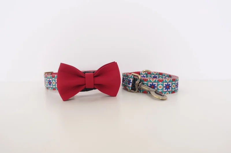 PLATTCO, venta al por menor, conjunto de collar hecho a mano de alta calidad con pajarita, Collar de perro caleidoscopio azul, conjunto de correa, 5 tamaños PDC375
