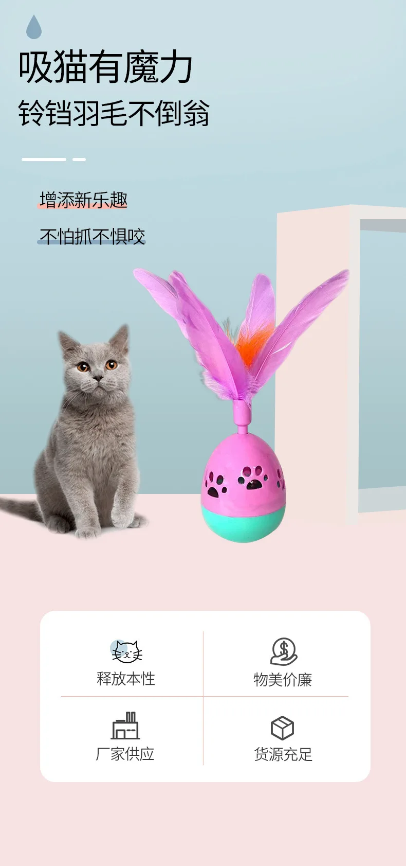 Pluma de campana roly-poly juguete de interacción para mascotas, mejora las emociones de las personas, Bola de derrame Bicolor, suministros para mascotas, juguetes para gatos, accesorios para gatos