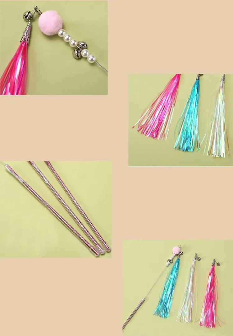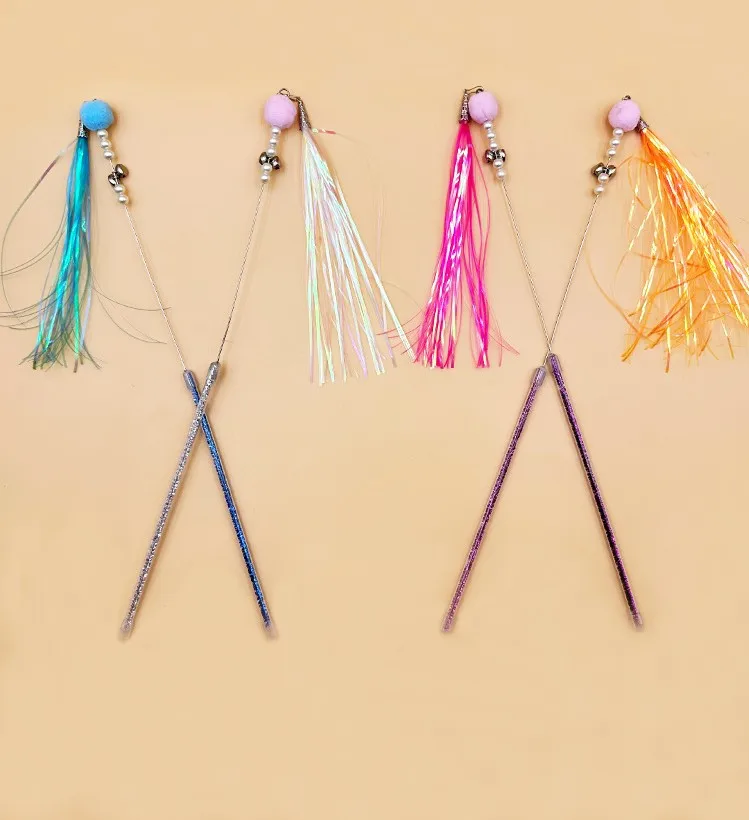 Pluma de juguete para gatos, palo de bola de lana, juguetes interactivos resistentes a las mordeduras para gatos, juguete de entrenamiento para gatitos, suministros para mascotas