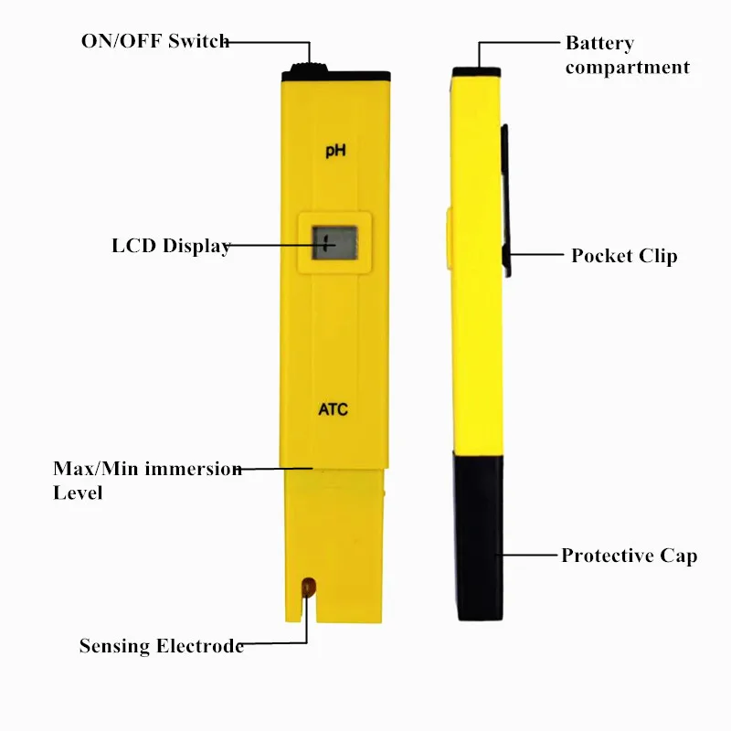 Este medidor de pH estilo bolígrafo digital es un instrumento ideal para acuarios, industria de pesca, piscinas, laboratorios escolares, alimentos y bebidas, etc.