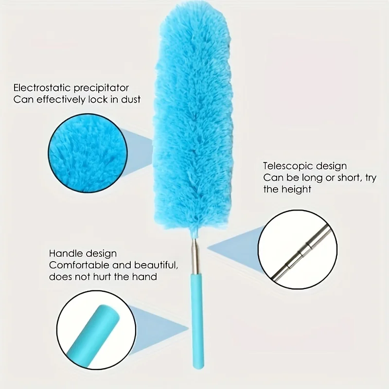 Plumero de microfibra extensible colorido, poste de acero inoxidable, cabezal plegable y reutilizable para limpieza eficiente de plumeros, 1 Uds.