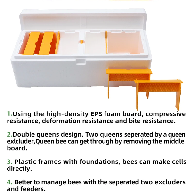Polinizador de doble apicultura, caja de cría de abejas reina, colmena de abejas reina de espuma de plástico Eps de alta resistencia multifuncional