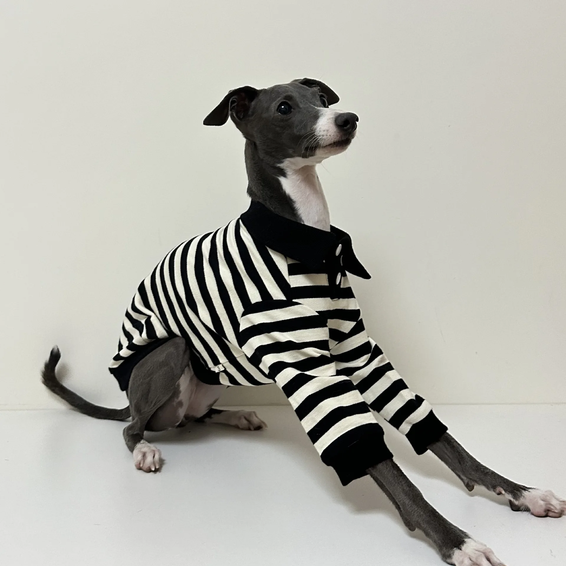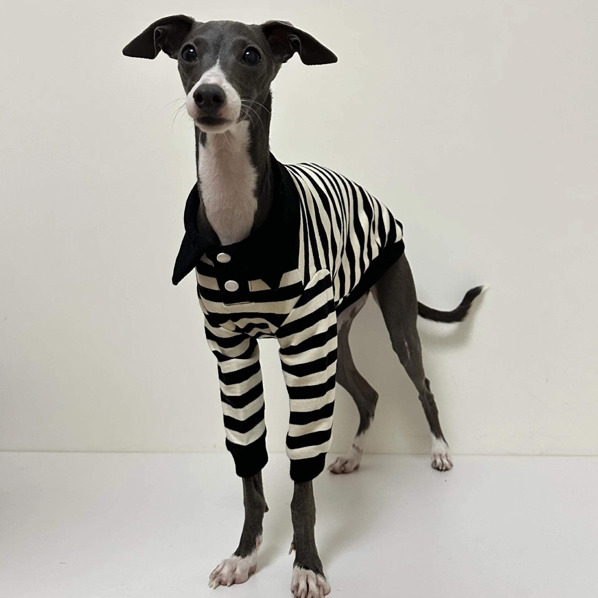 Polo a rayas de algodón para mascotas, cómoda camiseta elástica para perros, adecuada para ropa para cachorros de galgo italiano Whippet