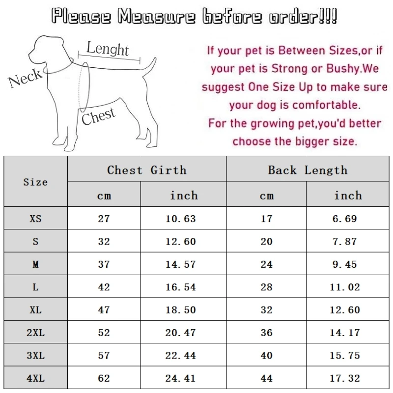 2XL: Pecho 52cm/20,47''; Longitud 36cm/14,17''