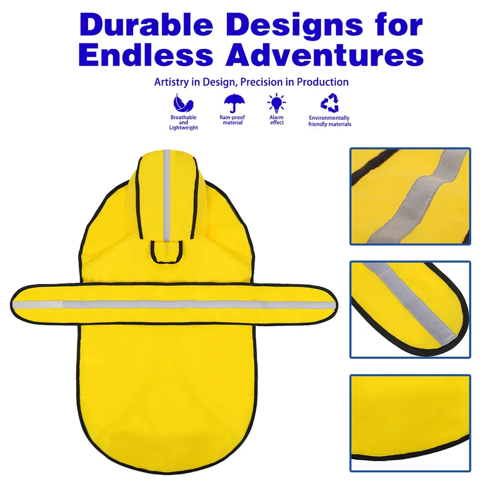 Poncho impermeable para perros reflectante, ligero, ajustable, impermeable, con sudaderas con capucha, orificio para correa para cachorros, perros pequeños, medianos y grandes