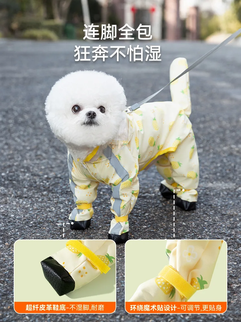 Poncho para salir puede levantar perros pequeños, Teddy Bigbear, impermeable para mascotas de cuatro patas con todo incluido, ropa para caminar para perros de temporada lluviosa