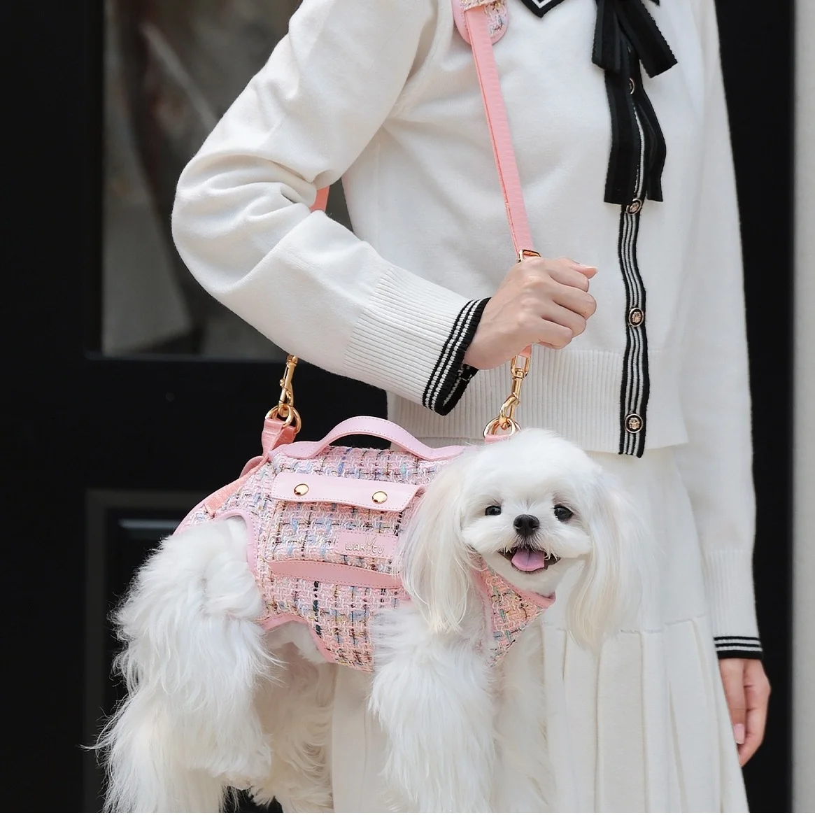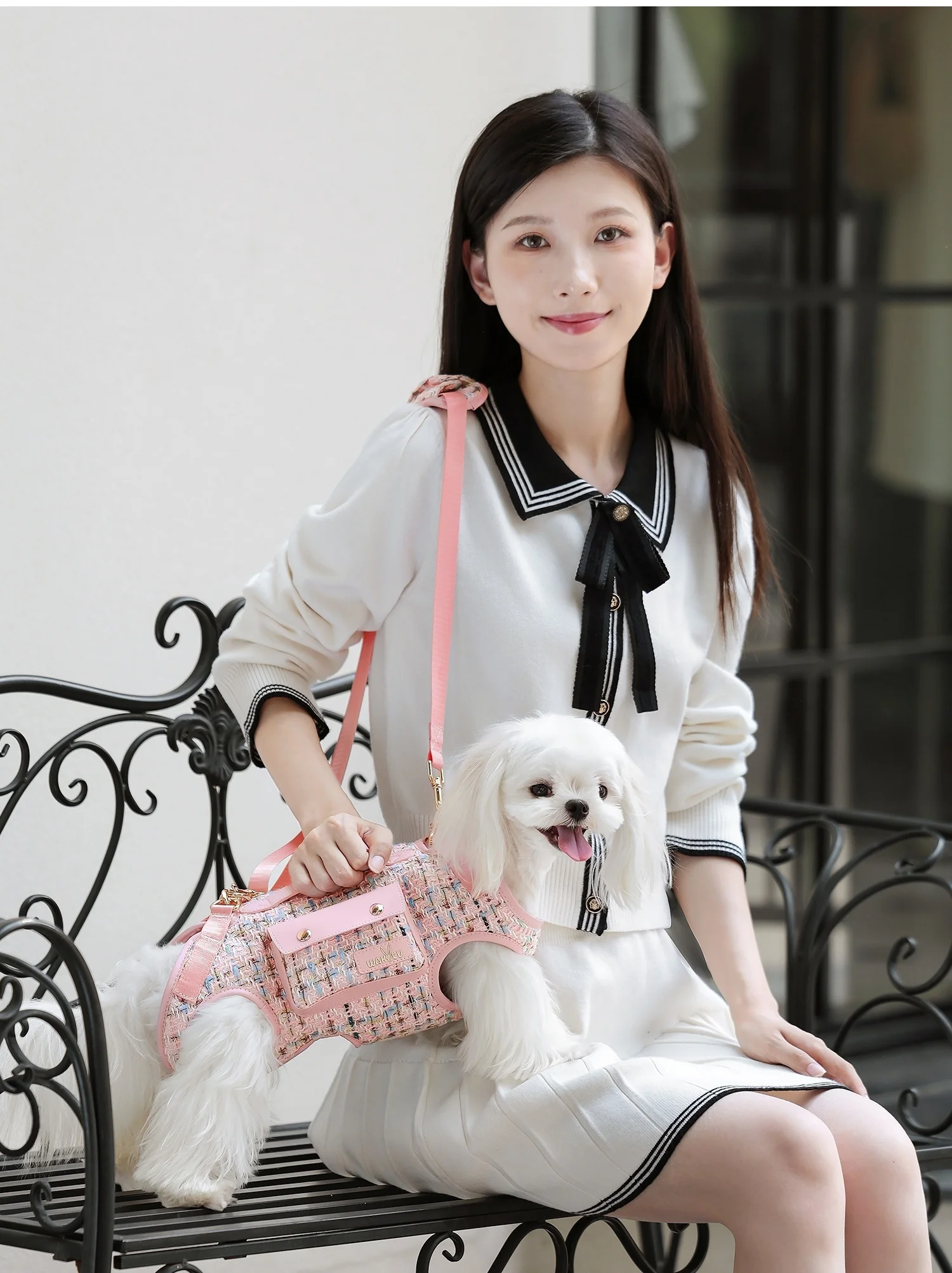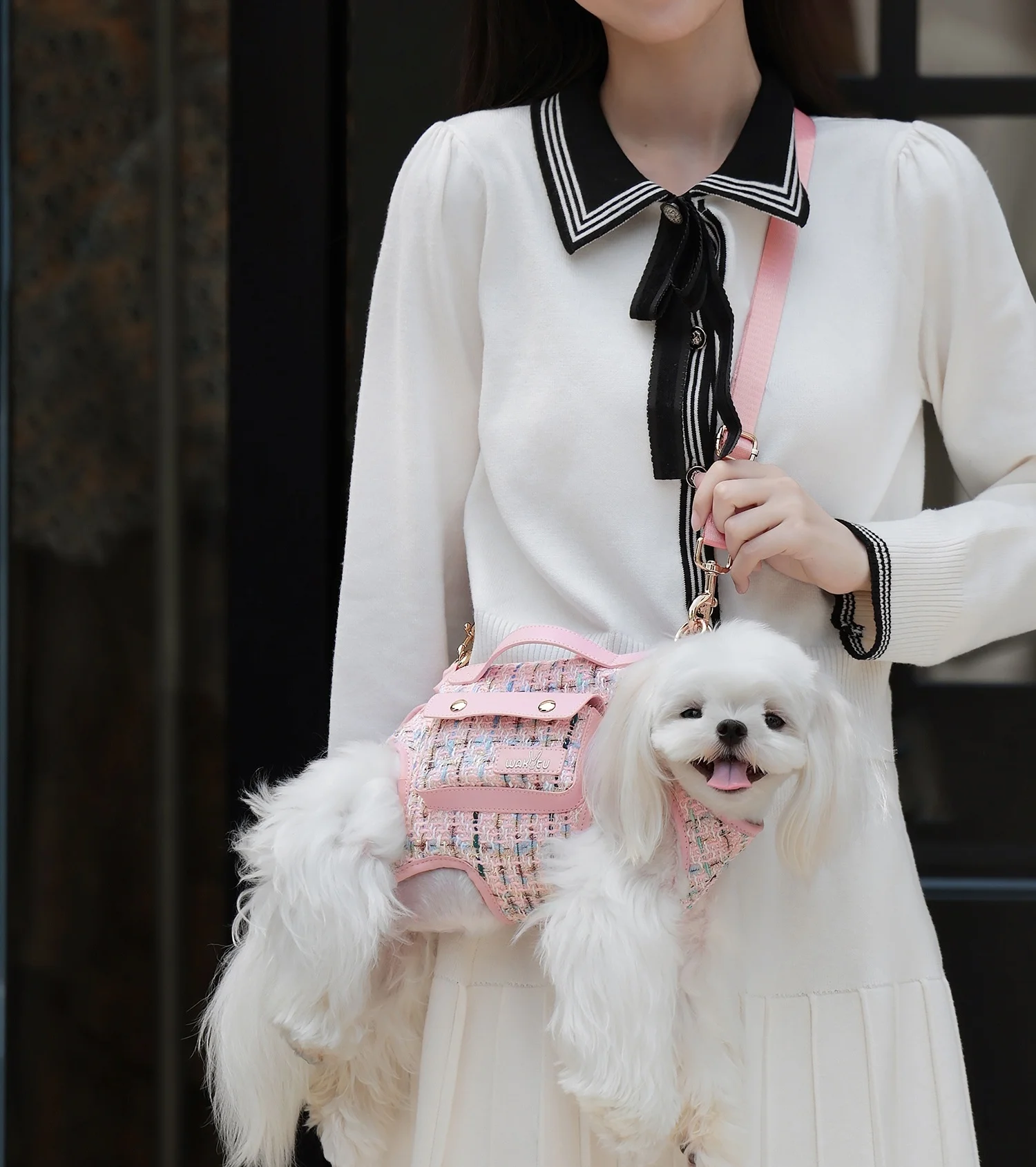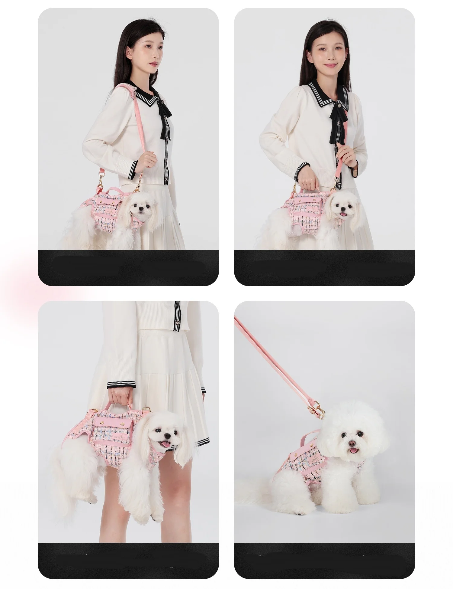 Portabebés y arnés para mascotas 2 en 1 con juego de correa para perros pequeños, bolsa transportadora para mascotas de lado suave, eslinga transportadora para mascotas de Tweed a cuadros