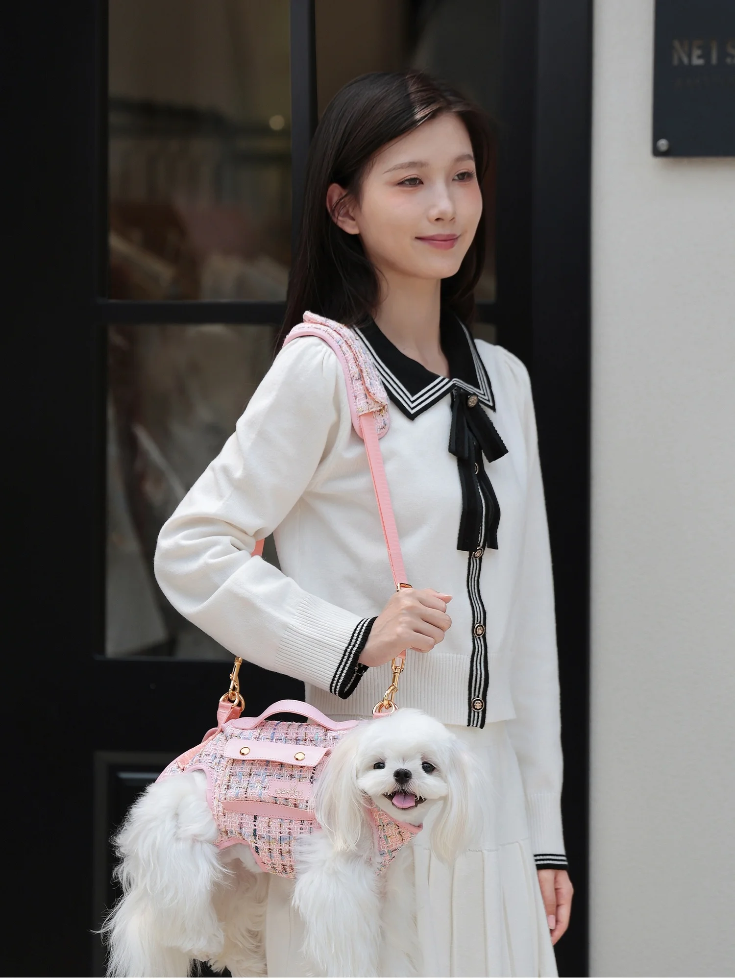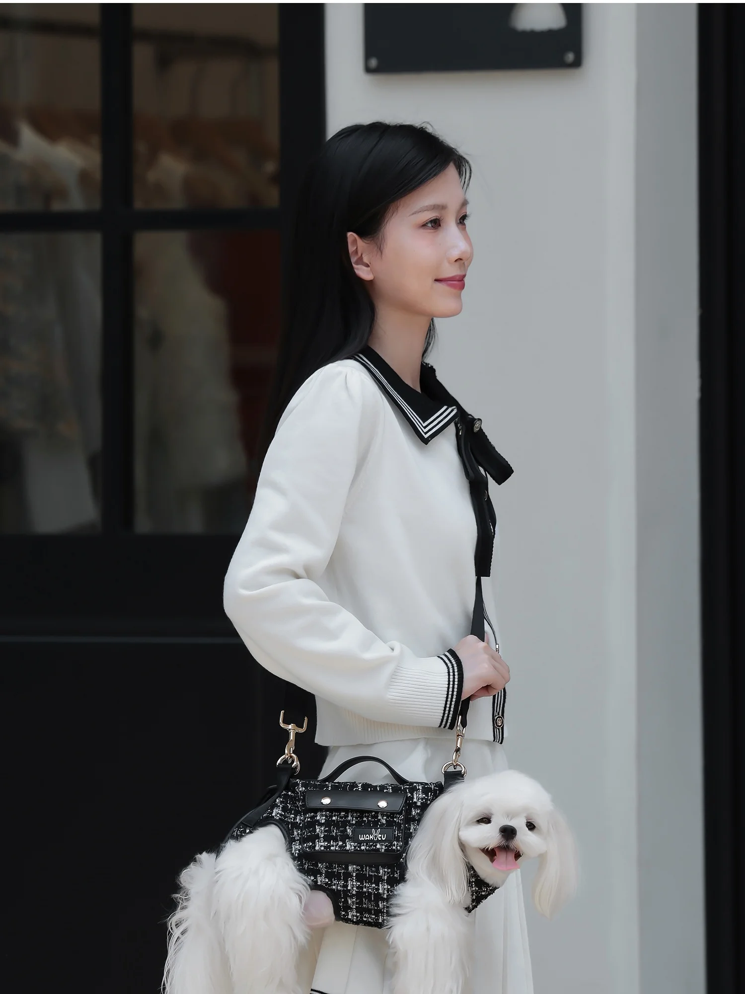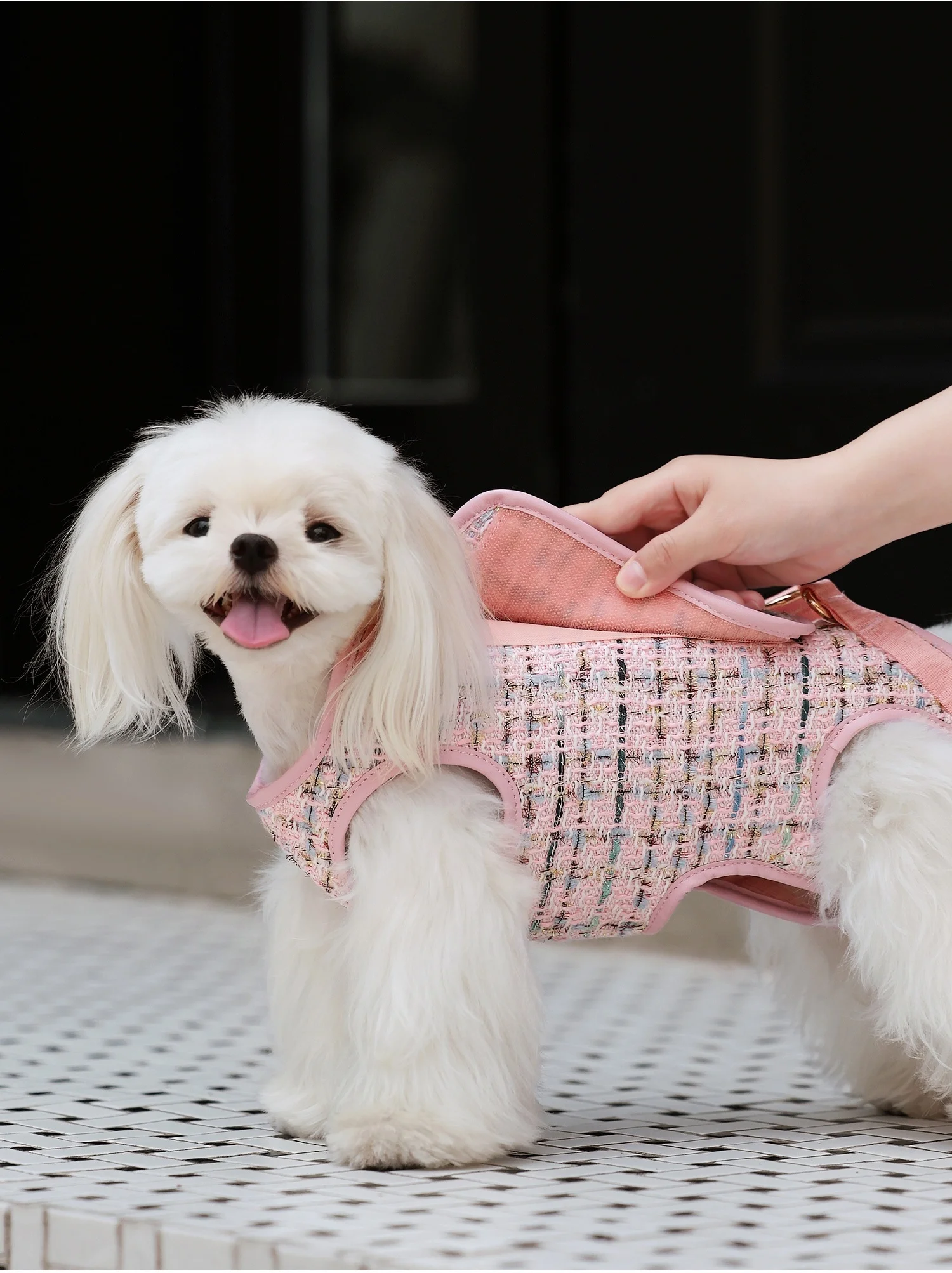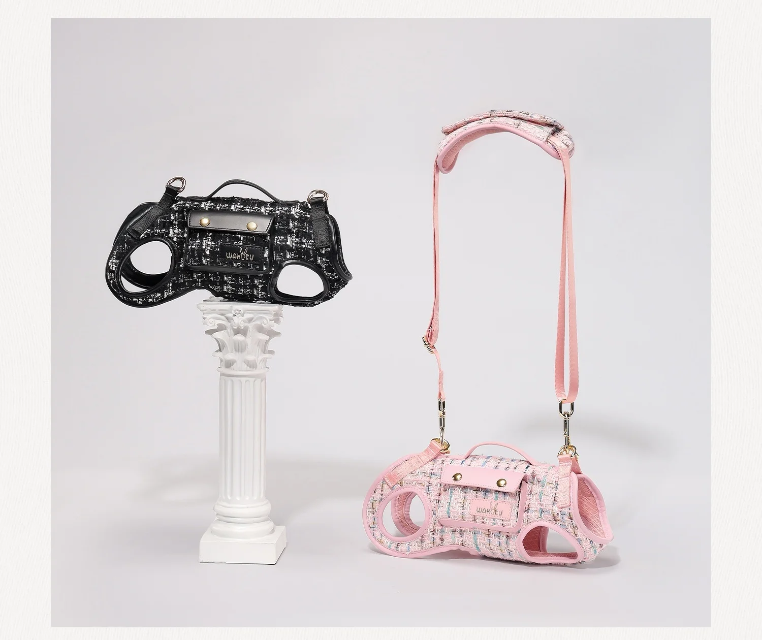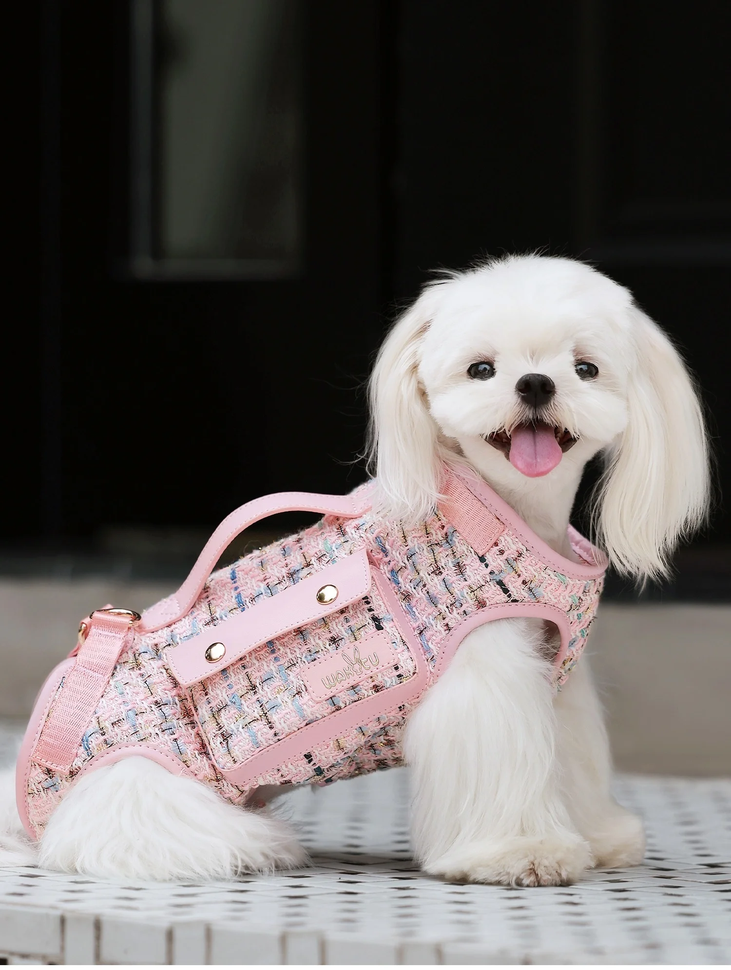Portabebés y arnés para mascotas 2 en 1 con juego de correa para perros pequeños, bolsa transportadora para mascotas de lado suave, eslinga transportadora para mascotas de Tweed a cuadros