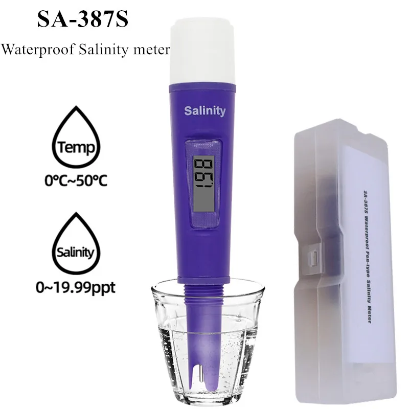 Medidor de salinidad portátil 387 387S Salinómetro Halómetro Medidor de sal Probador salado impermeable para salmuera Agua de mar Alimentos