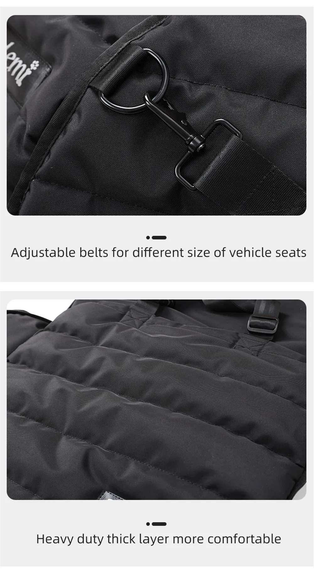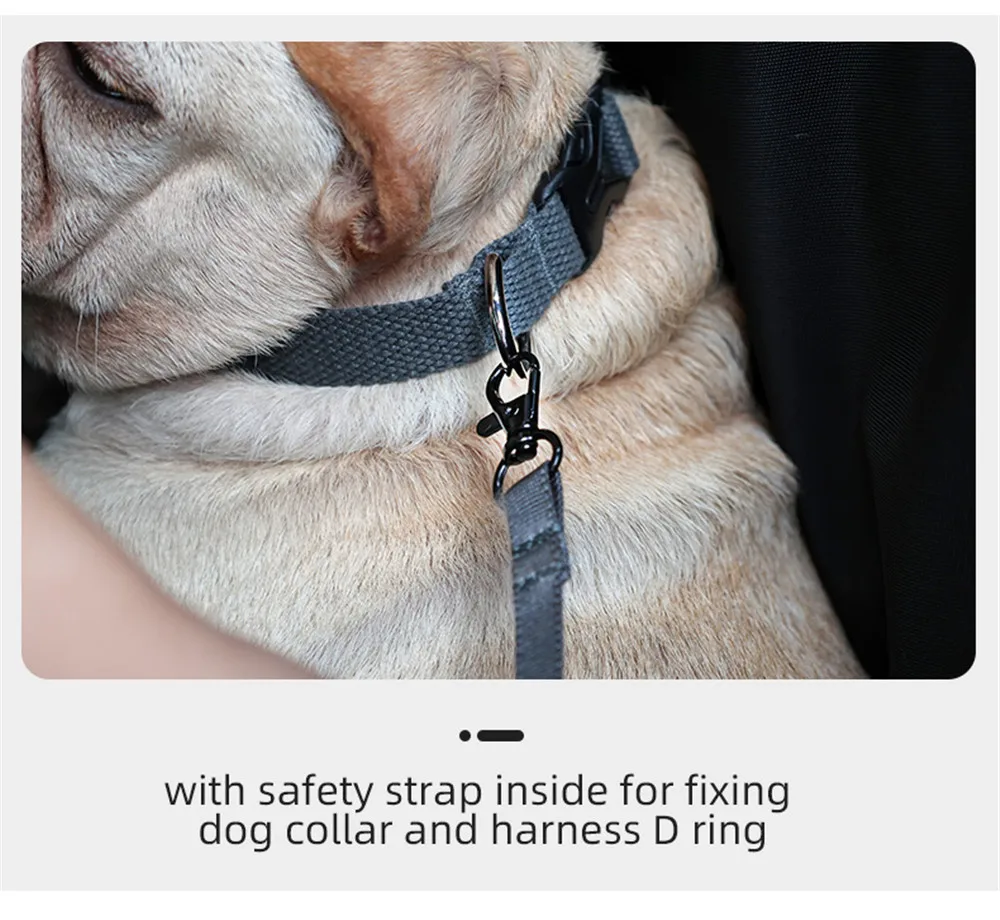 3.LAVADO DE SEGURIDAD: la correa de seguridad está incluida en esta cama, se puede colocar en el collar o arnés para mascotas, mantenga la seguridad de su mascota durante el viaje en el vehículo.