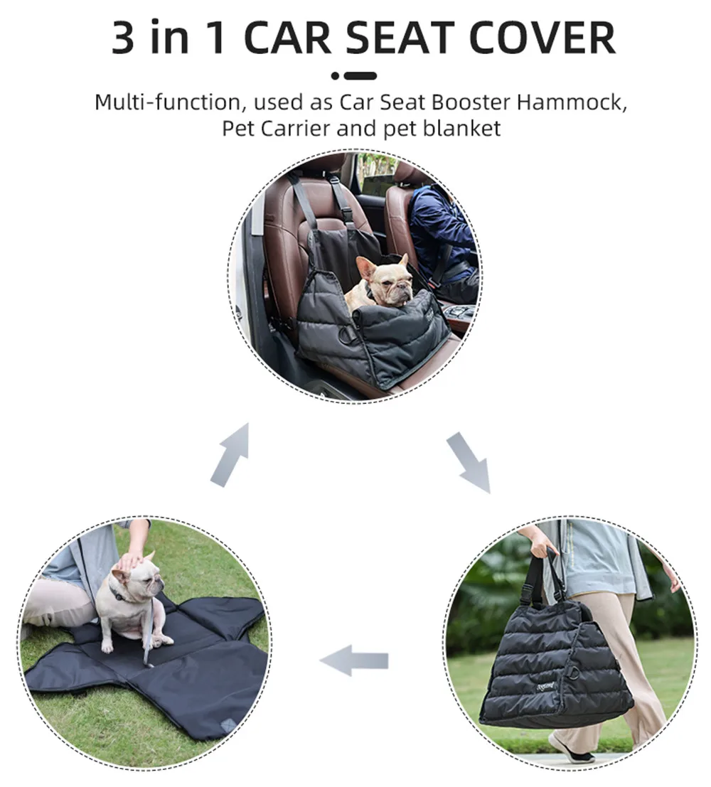 1.Multifunción: este transportador de cama para asiento de automóvil para mascotas está diseñado con 3 funciones diferentes, se puede usar como cama para asiento de automóvil para mascotas, transportador al aire libre, manta para mascotas.Comprar una puede obtener 3 funciones de gran valor.