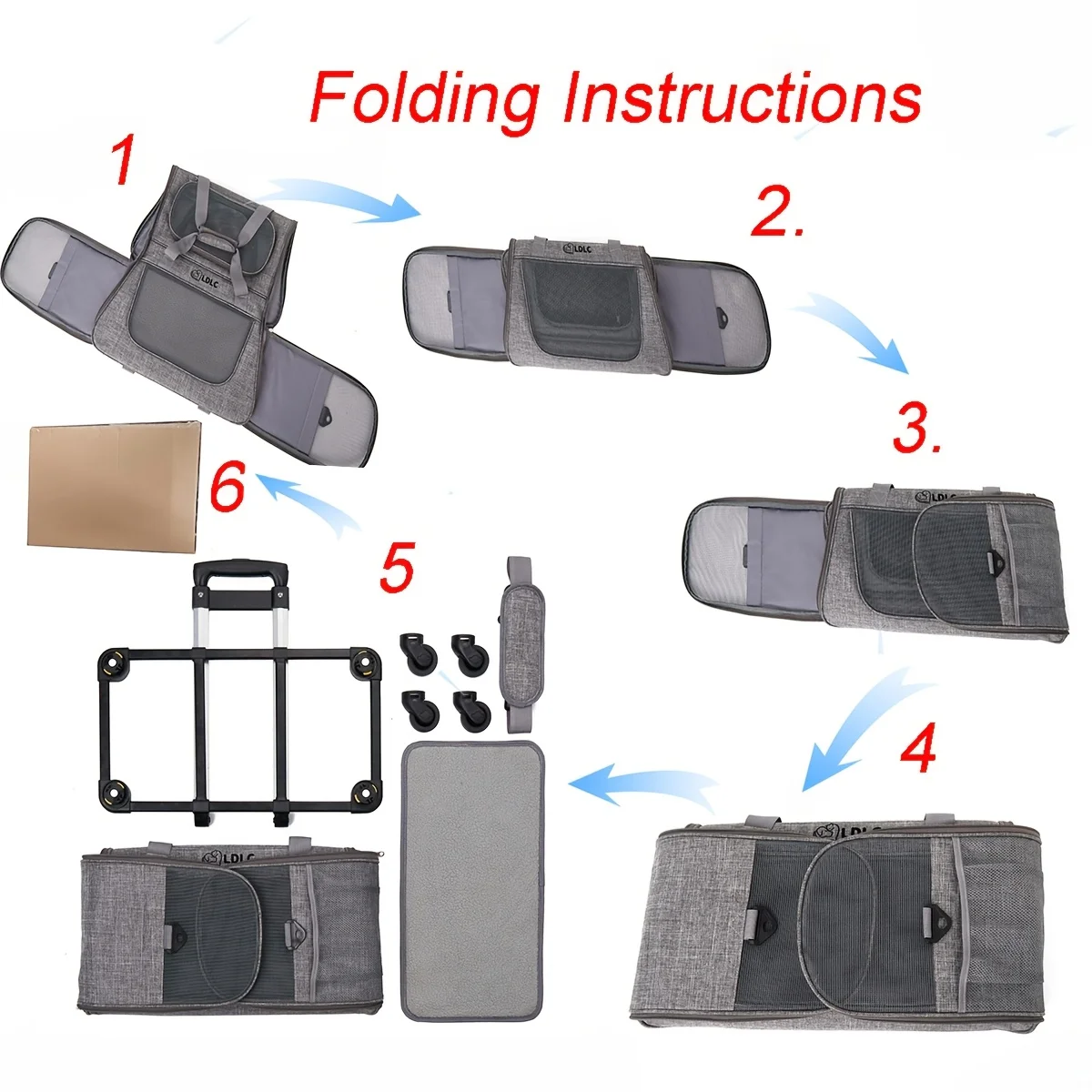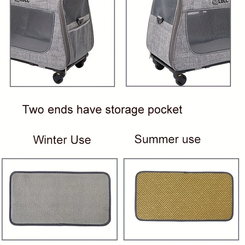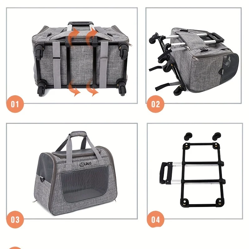 Portador rodante para mascotas, asa y ruedas desmontables, cierre de cremallera, diseño cómodo, maleta de viaje al aire libre para gatos y perros pequeños