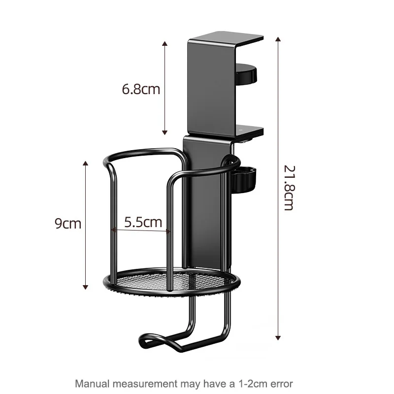 Parece resistente. Contiene la mayoría de los contenedores regulares o ligeramente más grandes que tenía. El frasco de vidrio [foto] es de tamaño estándar y tuve que quitarle la funda aislante para que encajara. Un vaso grande para refresco encajaba, pero tenía la base de "tamaño regular". El gancho es una característica interesante. Asegúrese de prestar atención a la versión fija o giratoria al realizar el pedido. Hice un pedido incorrecto y lo solucionaron. Todavía está bien. Sin instrucciones de montaje, pero sencillo. Tenga en cuenta que la "tapa" que aparece desde abajo no está sujeta con tornillos ni con ningún otro tipo de fijación, por lo que es probable que se caiga varias veces mientras trabaja con ella.