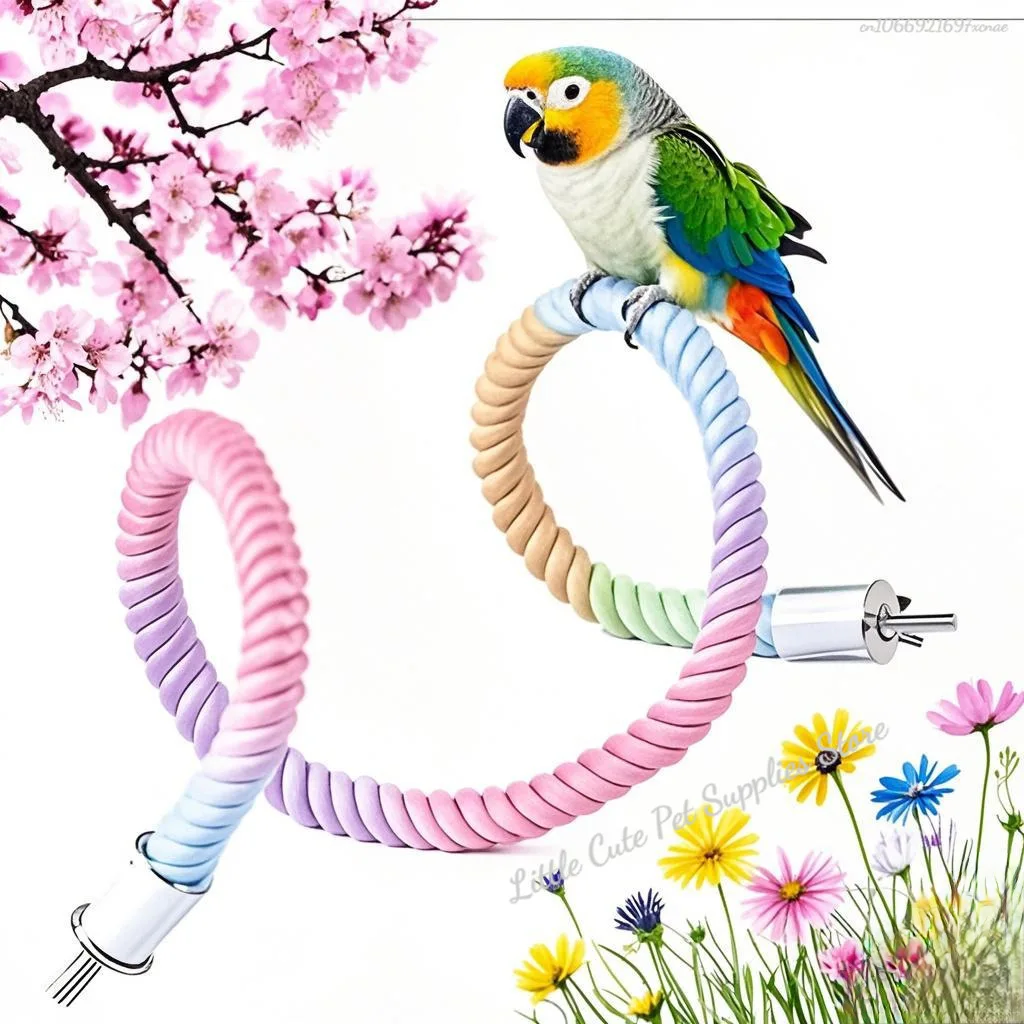 Poste para loros de algodón de colores con cabeza de tornillo, Clip colgante resistente, cuerda tejida de pie para loros, juguete giratorio cómodo para morder pájaros, escalada