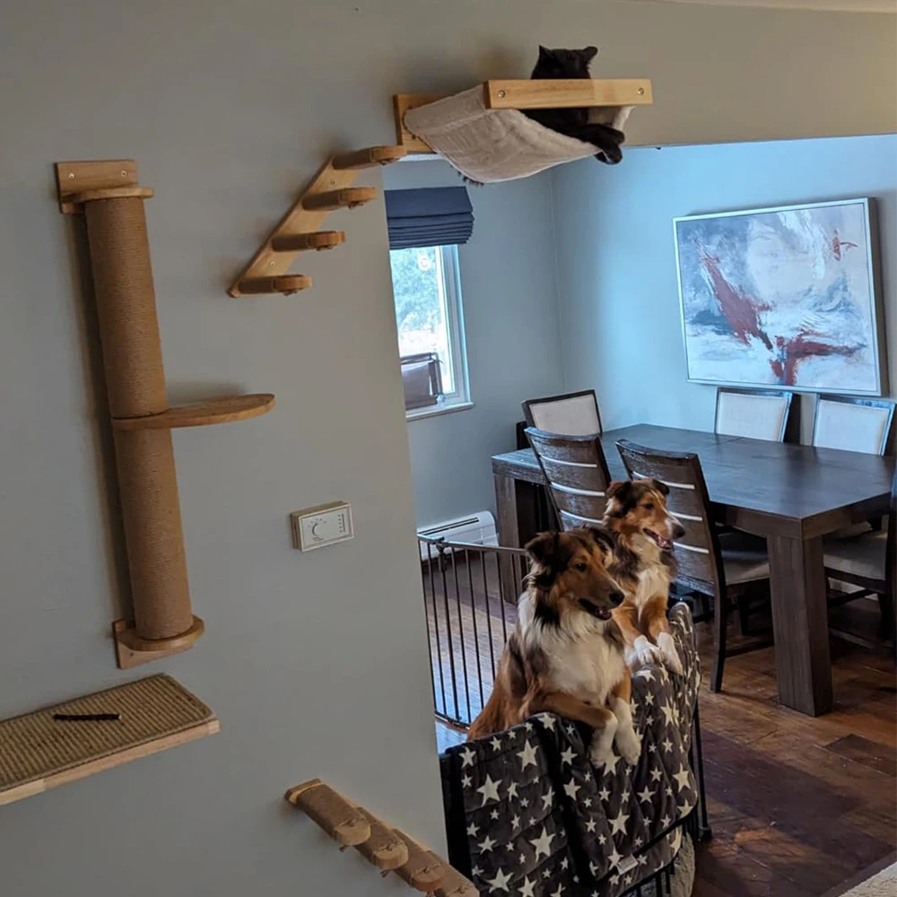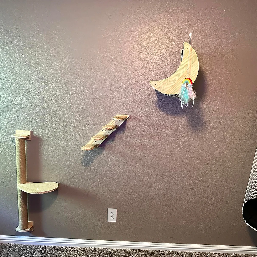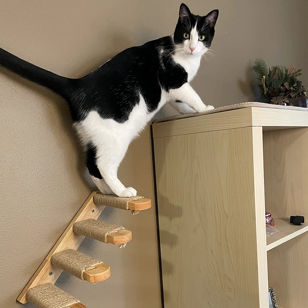 Los estantes de pared para gatos satisfacen el hábito de los gatos de escalar, aumentando el ejercicio y reduciendo la posibilidad de obesidad, lo que es bueno para la salud. Además, da a los gatos espacio para trepar y evitar estropear la casa.