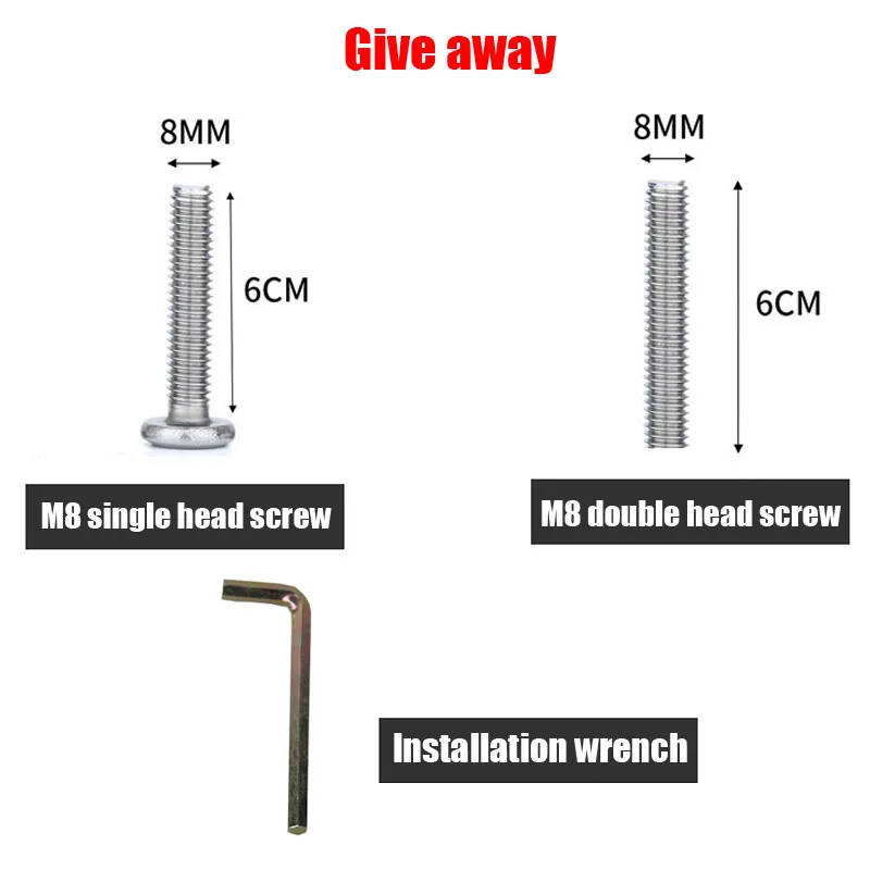 Viene con tornillos de una sola cabeza, tornillos de dos cabezas y una llave.