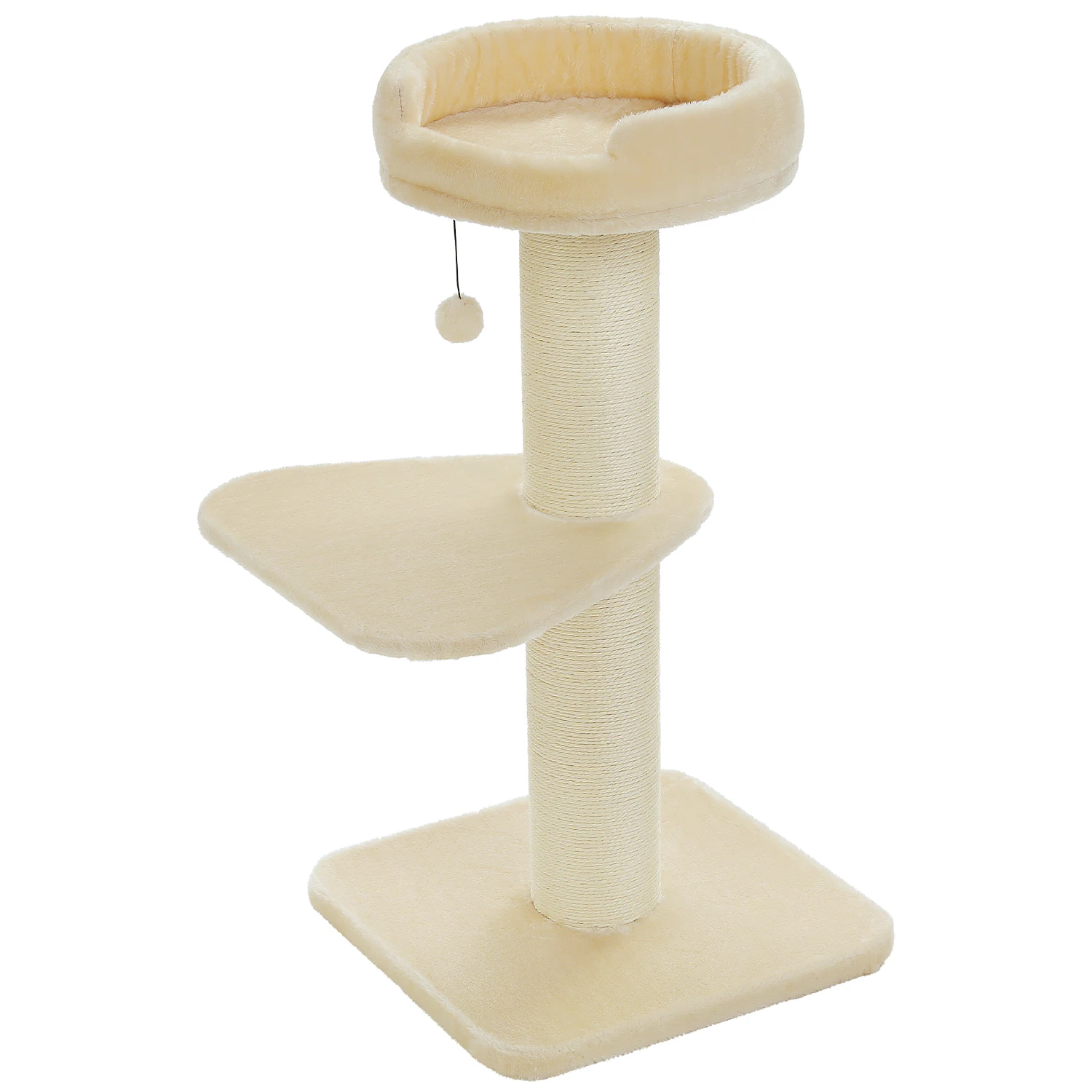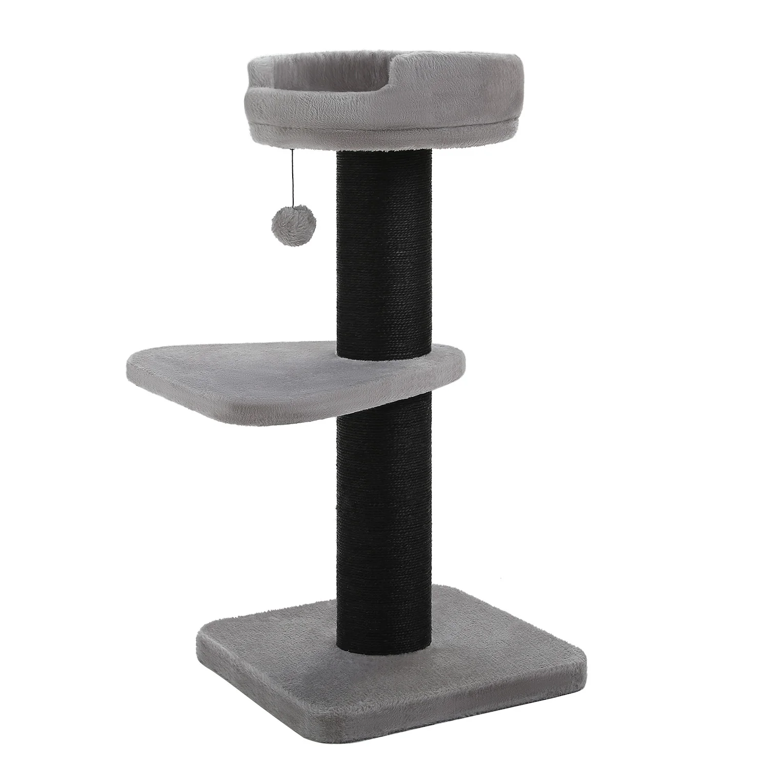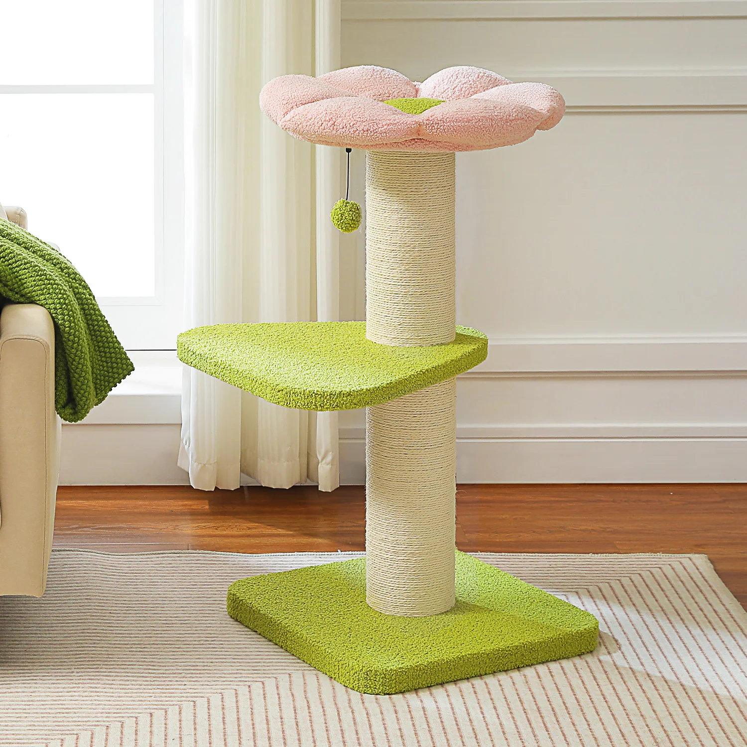 Juega y descansa para el paraíso:Equipado con 2 resistentes postes rascadores de sisal y un pompón de felpa, sus amigos peludos se divertirán en este árbol para gatos de flores en un tiempo ilimitado.