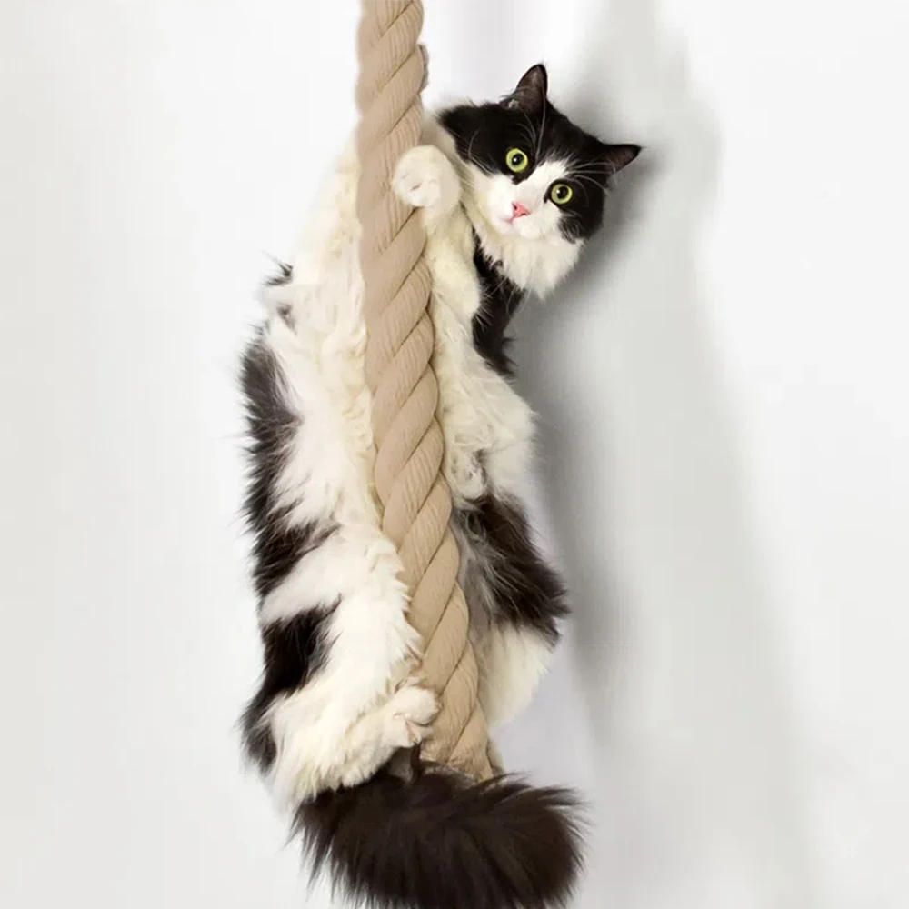 Se trata de una combinación de cuerdas para escalar gatos estilo pared especialmente diseñada para gatos, que integra hábilmente pedales de madera y cuerdas de cáñamo gruesas, brindando a los gatos un espacio de actividad vertical divertido y desafiante, satisfaciendo su amor natural por la escalada y la exploración.