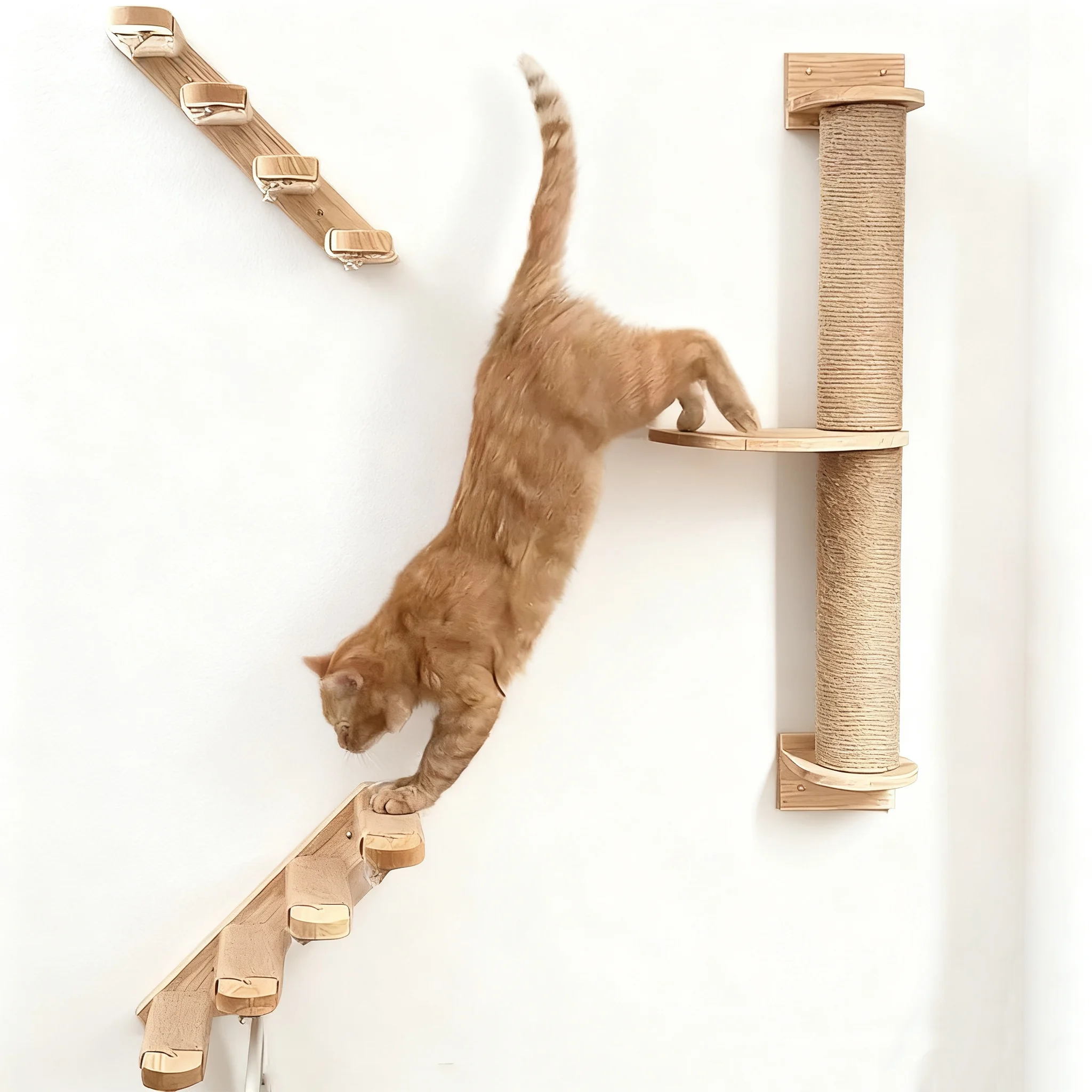 La base de madera combinada con una cuerda de sisal natural crea un estilo natural y minimalista, adecuado para diversos entornos domésticos.El diseño de la columna reforzada ofrece una gran capacidad de carga, diseñada específicamente para gatos más grandes; la cuerda de sisal es duradera y resistente al desgaste, mientras que el marco de madera garantiza estabilidad y seguridad.