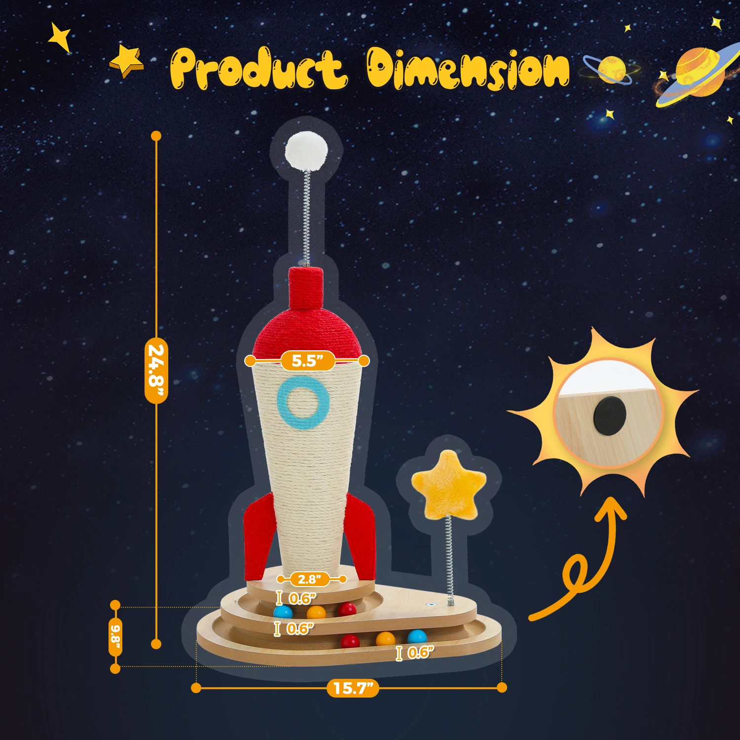 Poste rascador para gatos con pista, juguete, rascador para gatos, cohete, para interiores, torre de árbol para gatos con postes rascadores de sisal, muebles interactivos para gatos