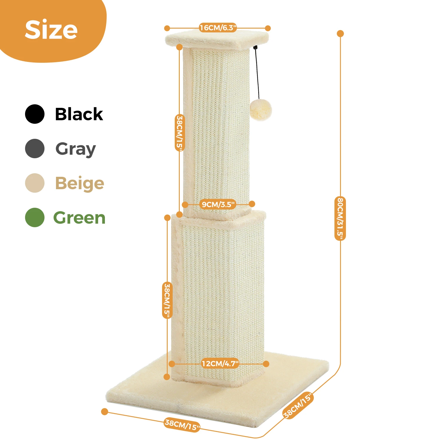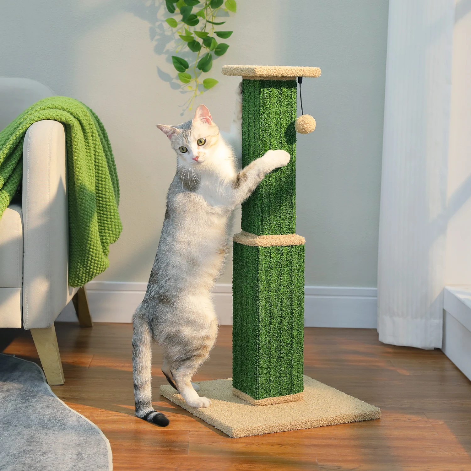 Diseñado con una base de pedestal gruesa y resistente que garantiza un equilibrio excepcional, evitando que se vuelque incluso durante juegos vigorosos.Perfecta para gatos activos de interior, la estructura estable ofrece una experiencia segura de rascar y escalar, brindando tranquilidad a los padres de mascotas.
