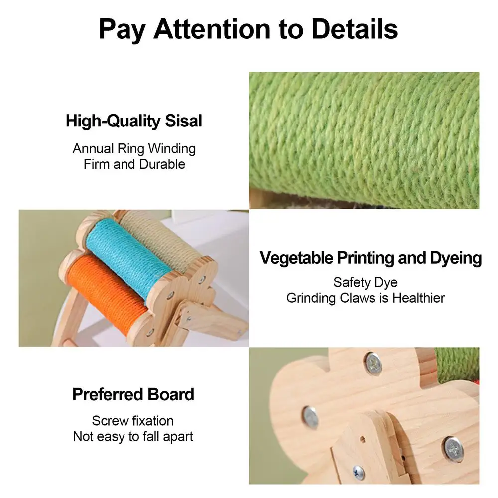 1. Material de alta calidad: el uso de material de sisal resistente y con postes de sisal en cinco colores, proporciona una forma saludable para que los gatitos arañen mientras ayudan a proteger sus muebles. Este rascador para gatitos es beneficioso para atraer la atención del gato y hacer que el gato se enamore de este juguete.