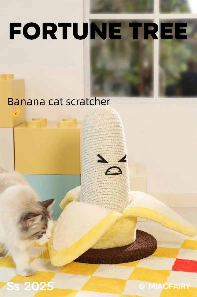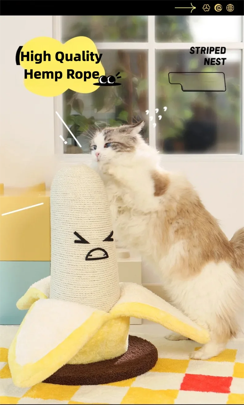 Arranhador de gato de plátano, juguete interactivo con bola colgante, poste de entrenamiento para gatos grandes, Protector de muebles de gatito, Sisal para aliviar la ansiedad