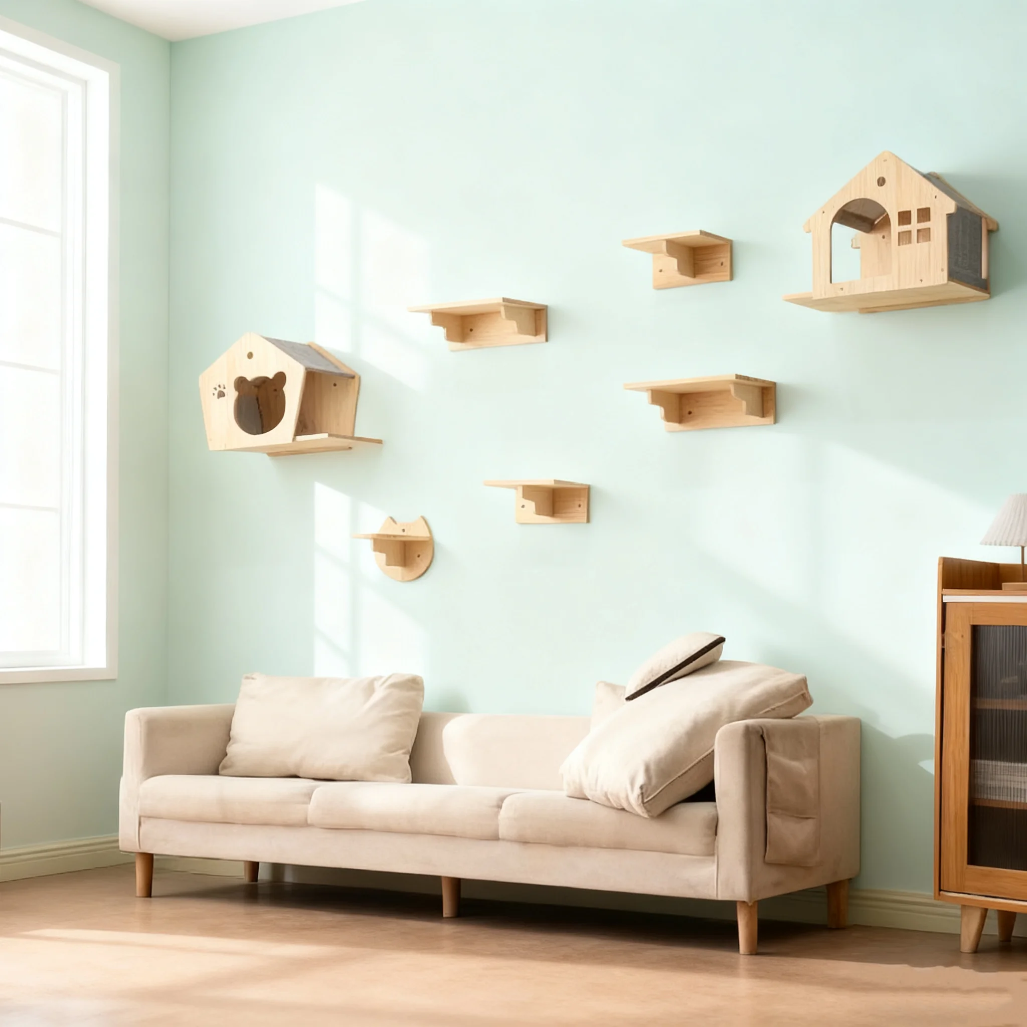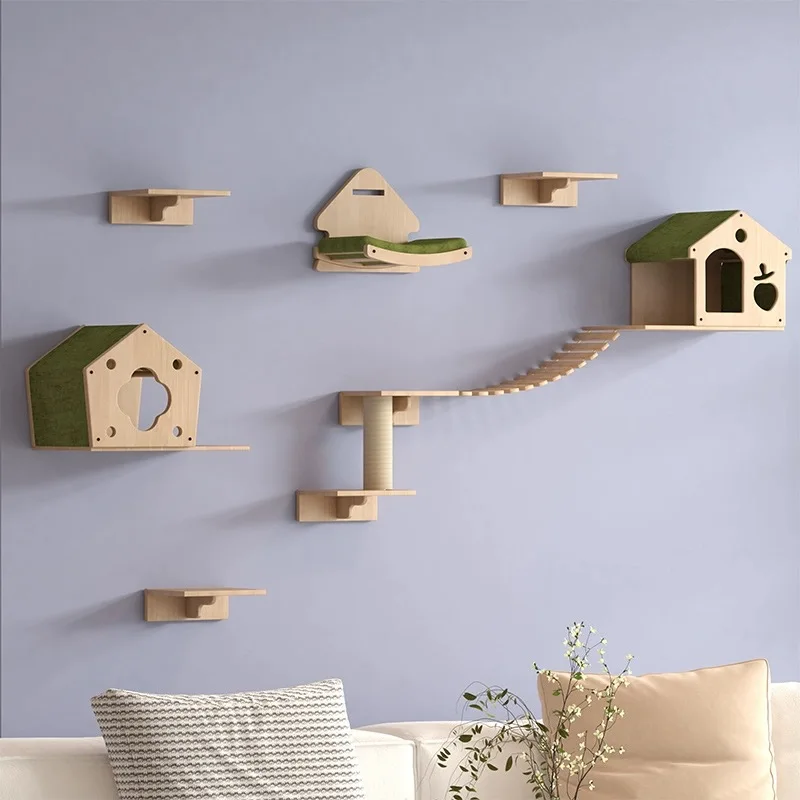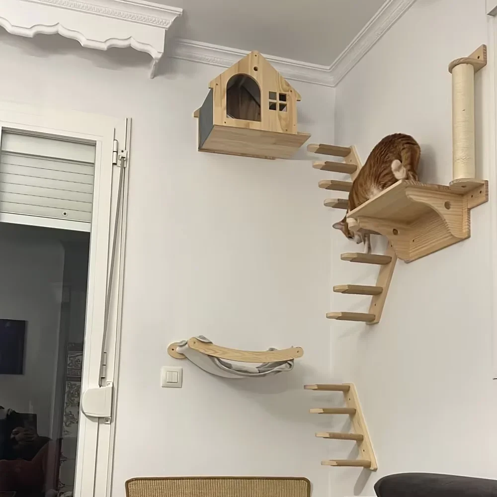 Se pueden combinar e instalar de manera flexible según el espacio de la pared, el diseño del hogar y los hábitos de actividad del gato. Ya sea una unidad pequeña compacta o un espacio grande y espacioso, se puede planificar inteligentemente para aprovechar al máximo el espacio vertical y crear un parque de atracciones exclusivo para gatos único, sin ocupar demasiado espacio en el suelo y mantener limpio el hogar.