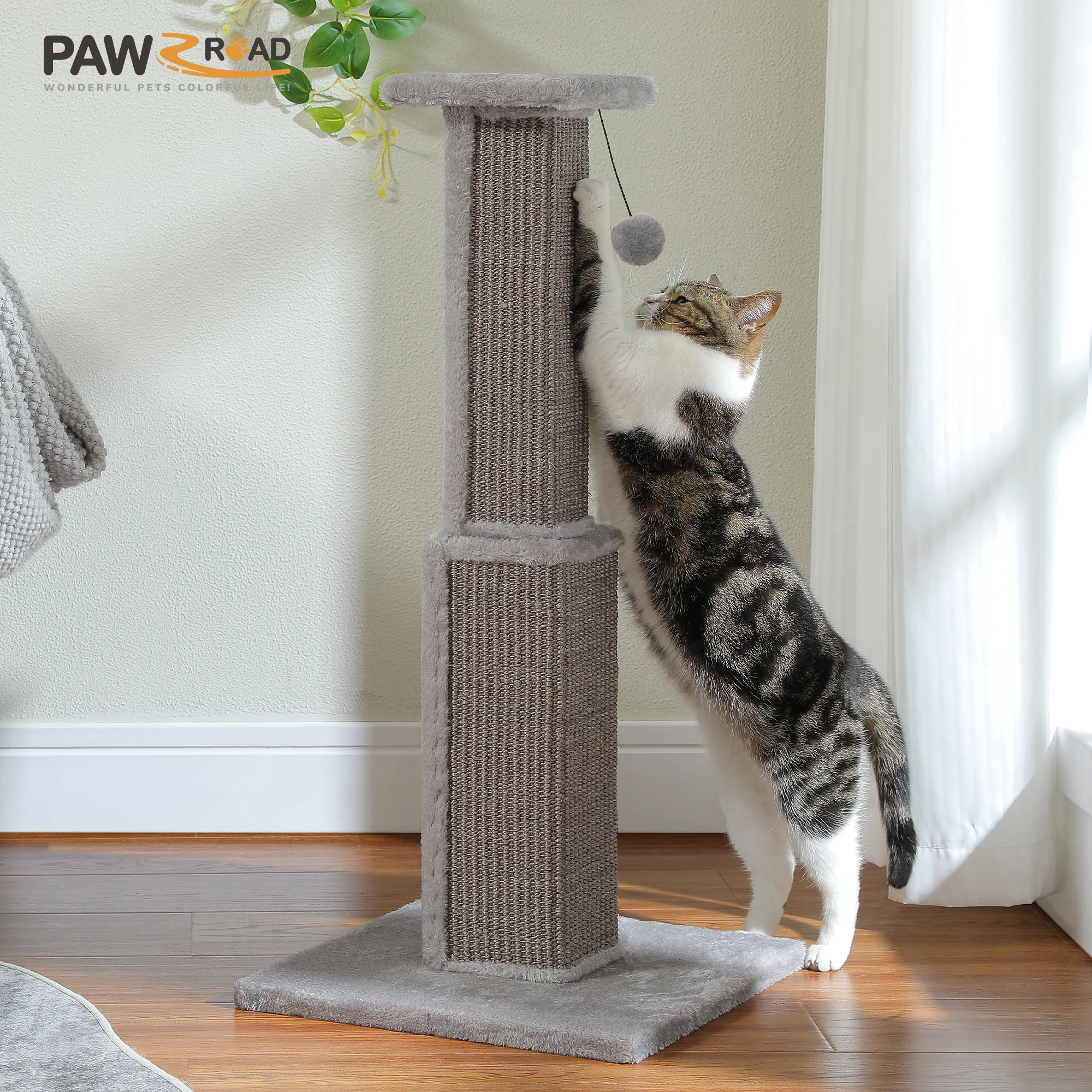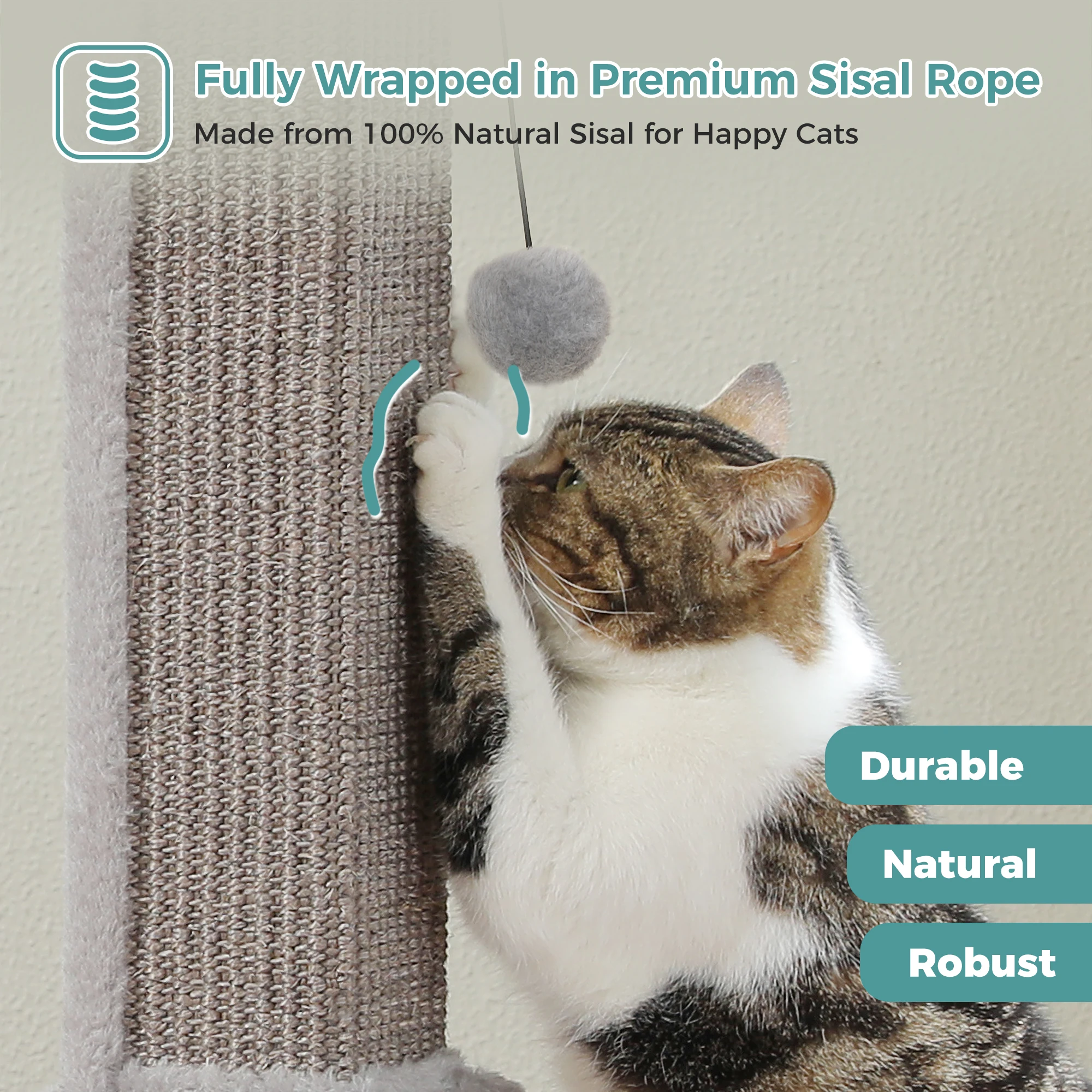 Alto y duradero:Este rascador grande para gatos mide 81 cm/32 pulgadas de alto, anclado por una base estable, lo que garantiza que permanezca en posición vertical incluso durante sesiones vigorosas de rascado.El pilar envuelto en sisal de 5 pulgadas de ancho ofrece una amplia área para que los gatos satisfagan sus necesidades de rascado.