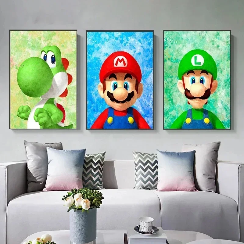 Póster Super Marios Bros, Anime Luigi Yoshi, pared de habitación, lienzo, pintura, carteles, decoración de fondo Kawaii, pintura artística de pared, regalo