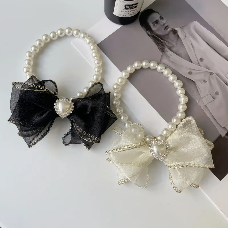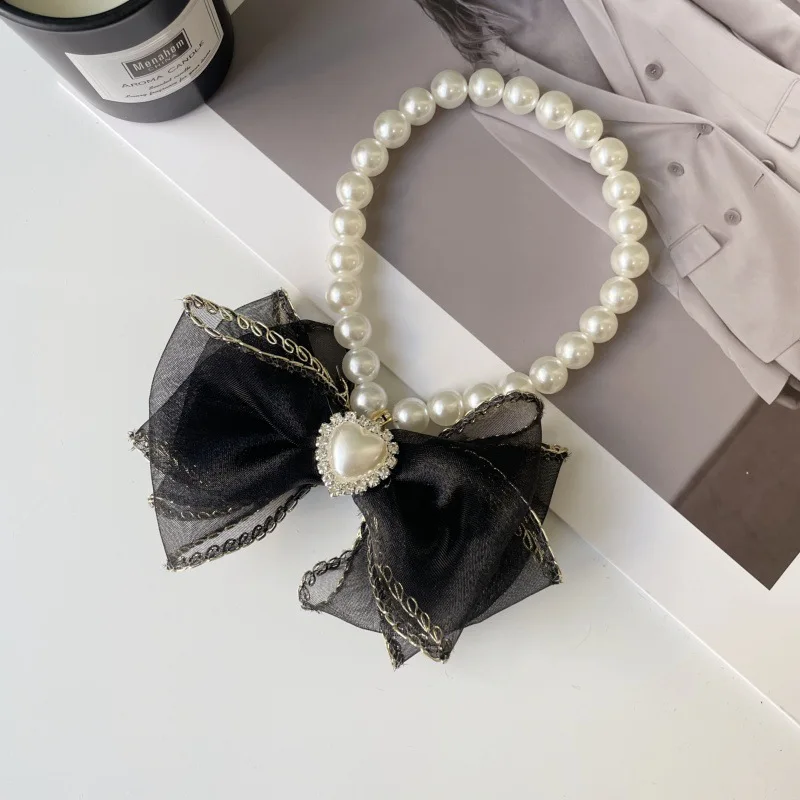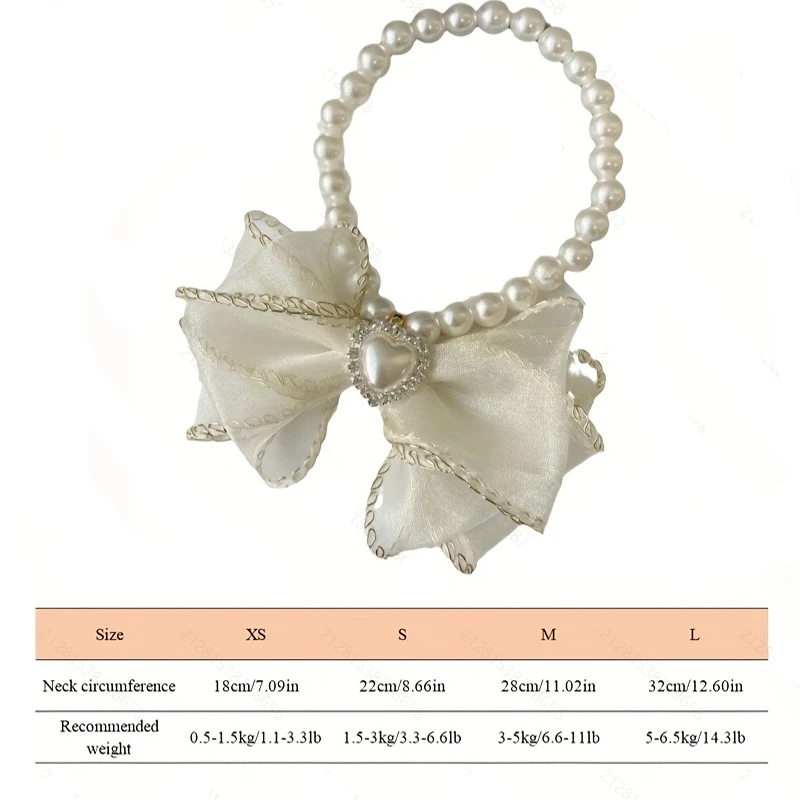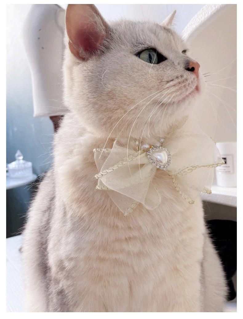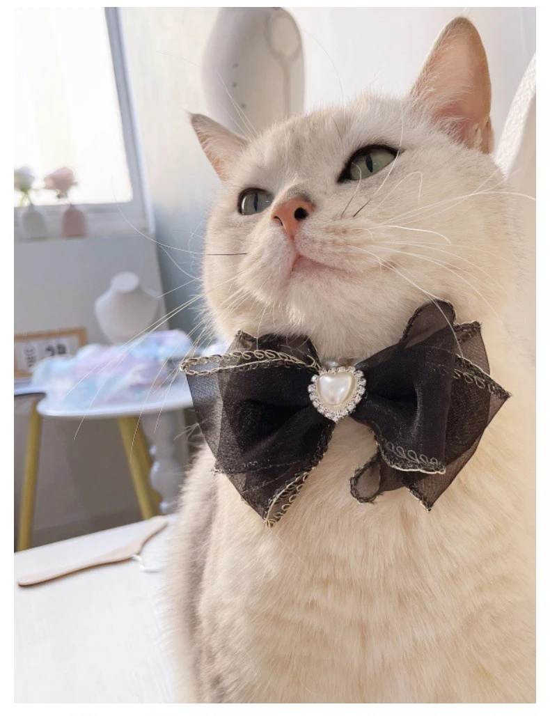 Precioso Collar de perlas para gatos, collares para mascotas para perros pequeños, Collar de encaje para gatitos con lazo, Collar de lujo para gatos, suministros para mascotas
