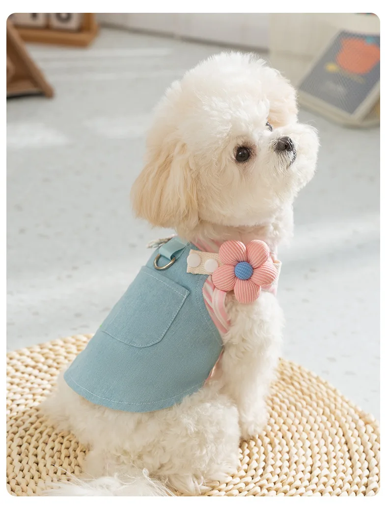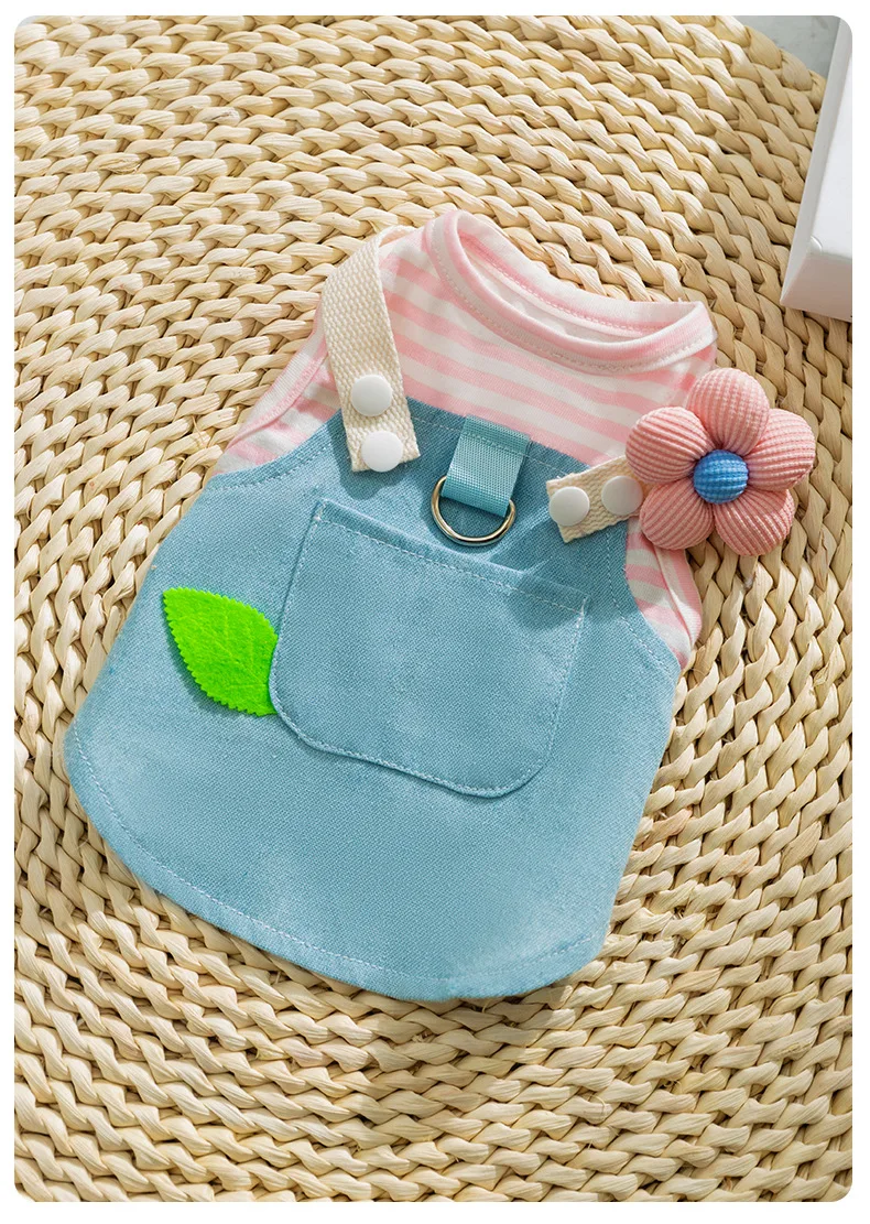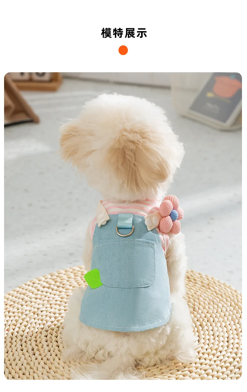 Primavera Denim rayas Patchwork se puede tirar falda para mascotas fino transpirable Teddy pequeño cachorro ropa para perros - imagen 5