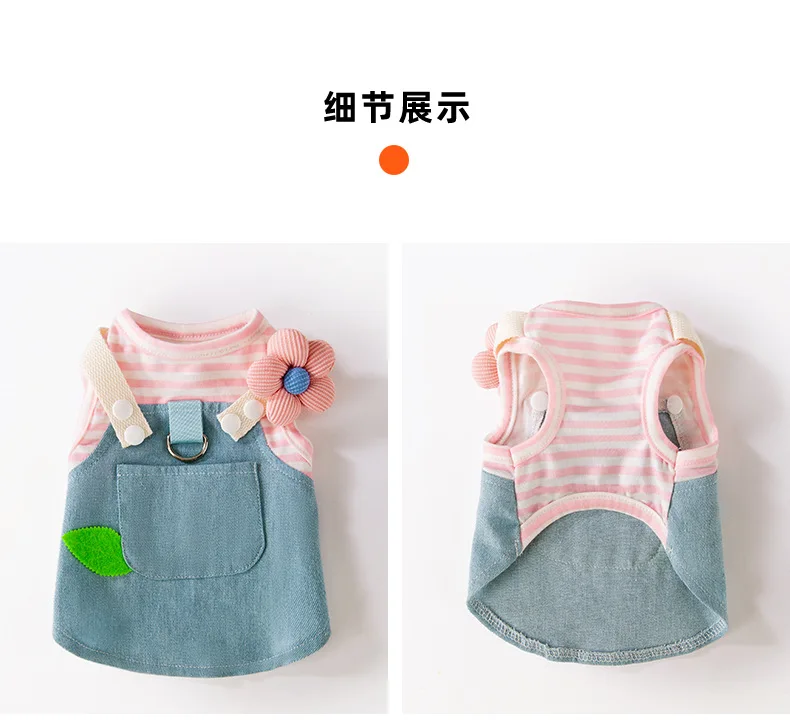 Primavera Denim rayas Patchwork se puede tirar falda para mascotas fino transpirable Teddy pequeño cachorro ropa para perros - imagen 2