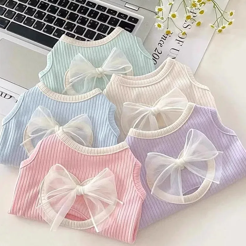 Primavera y perro verano Ins corazón hueco malla arco fino camiseta sin mangas arco estilo lindo camiseta sin mangas perro pequeño gato mascota ropa para perros