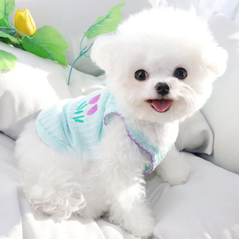 Primavera/Verano, camiseta sin mangas suspendida con borde de encaje transpirable, ropa para perros y gatos, ropa para cachorros pequeños, chaleco refrescante para perros, ropa para gatos
