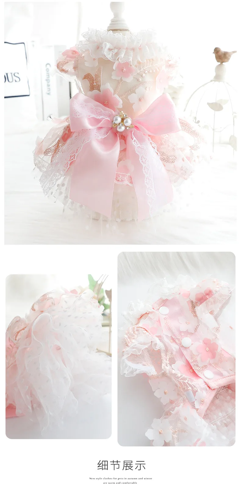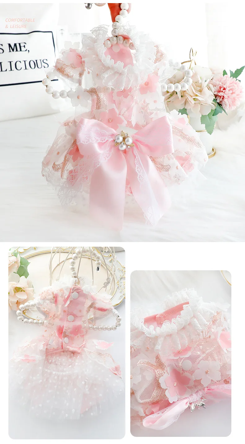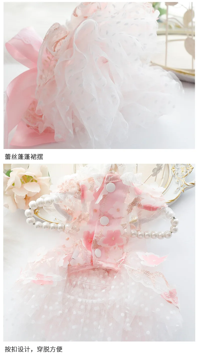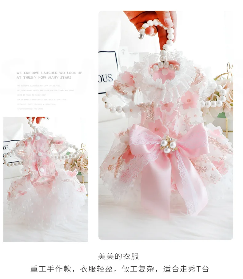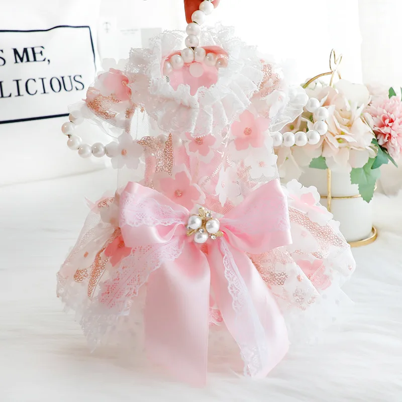 Primavera Verano estilo fino mascota gato perro vestido de flores princesa y vestido de boda diseño vestido hecho a mano para perros de peluche