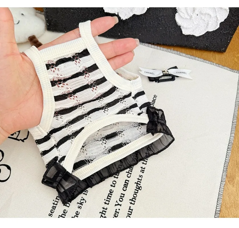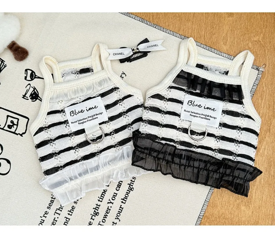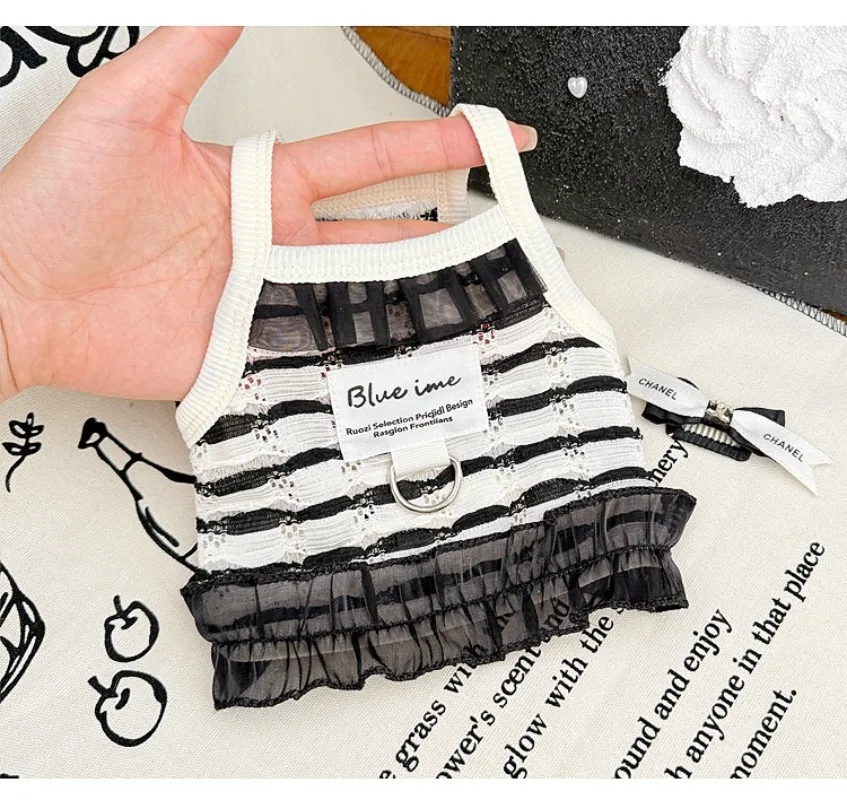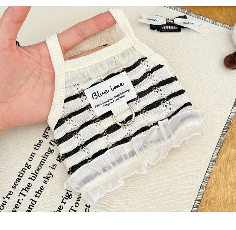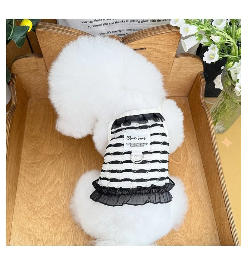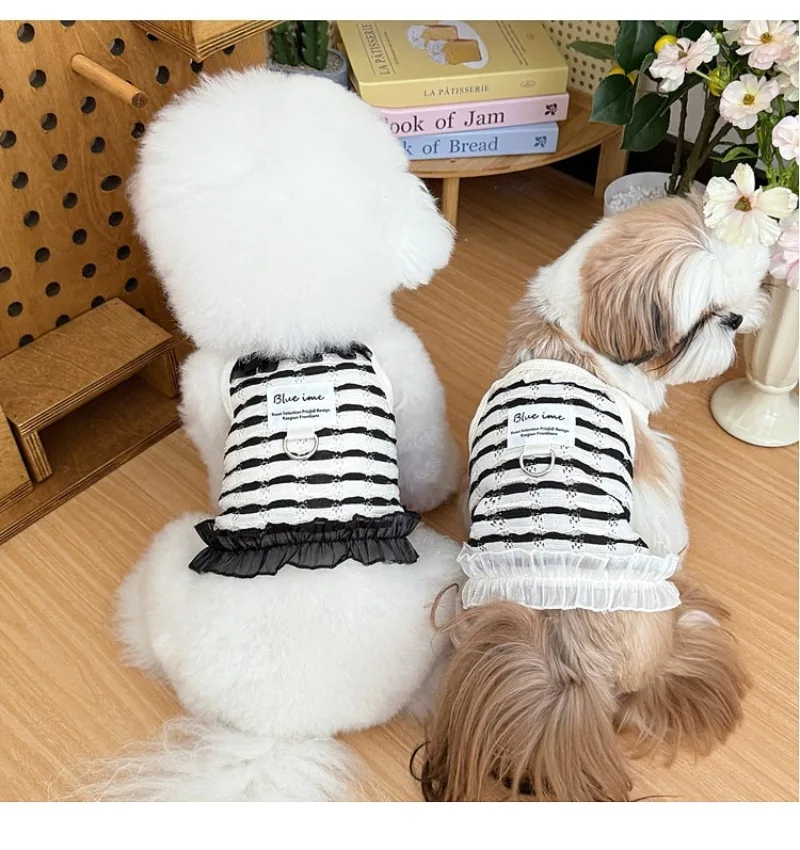 Primavera y verano para perros huecos de encaje blanco y negro tirar hacia atrás corazón perros pequeños gato Teddy ropa para perros chaleco para perros