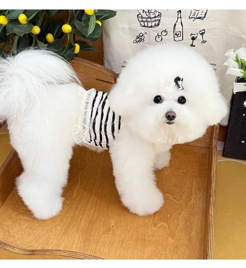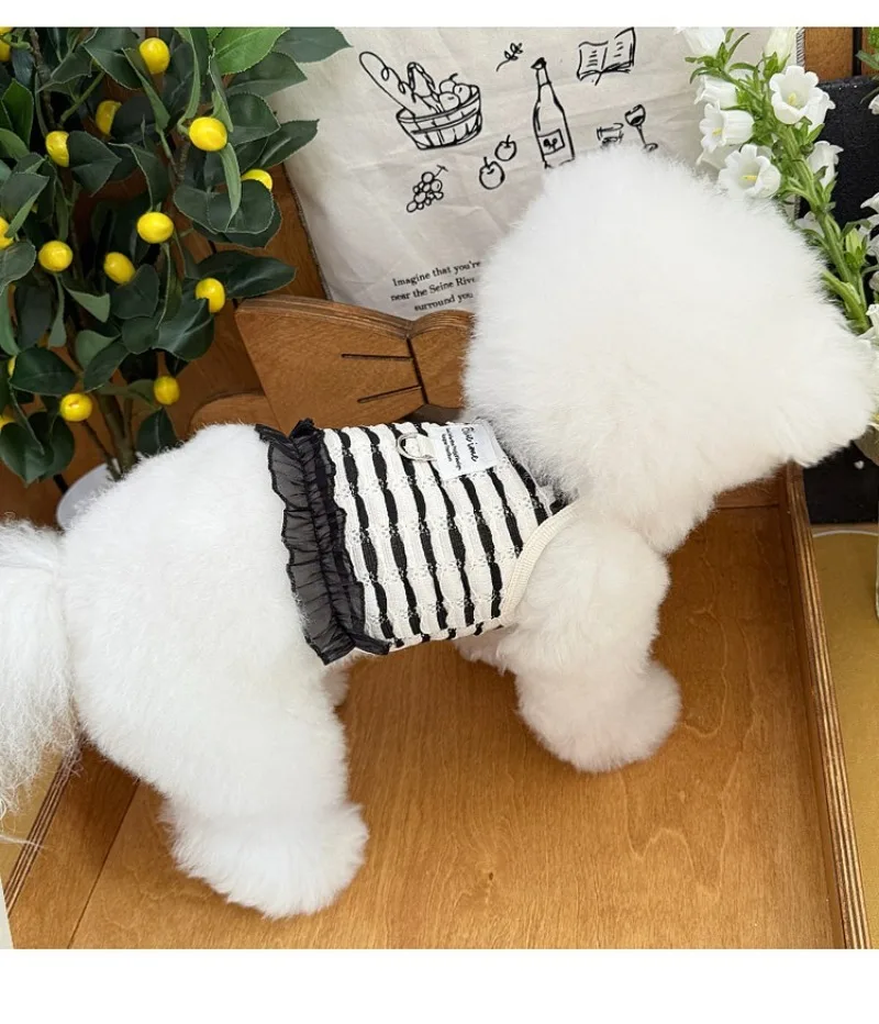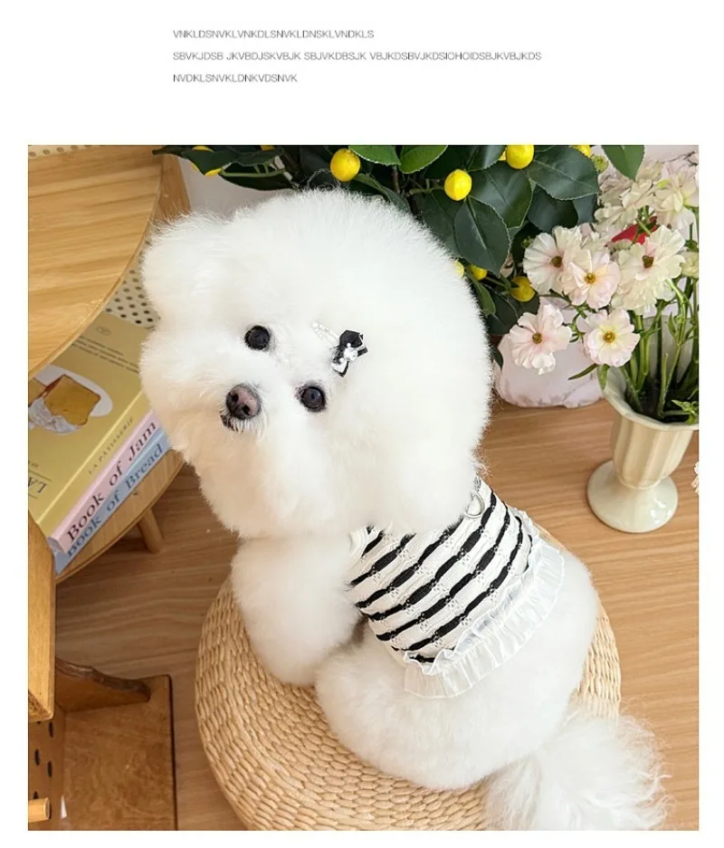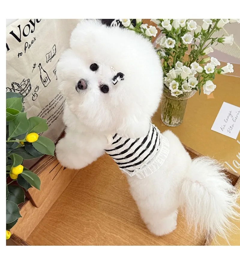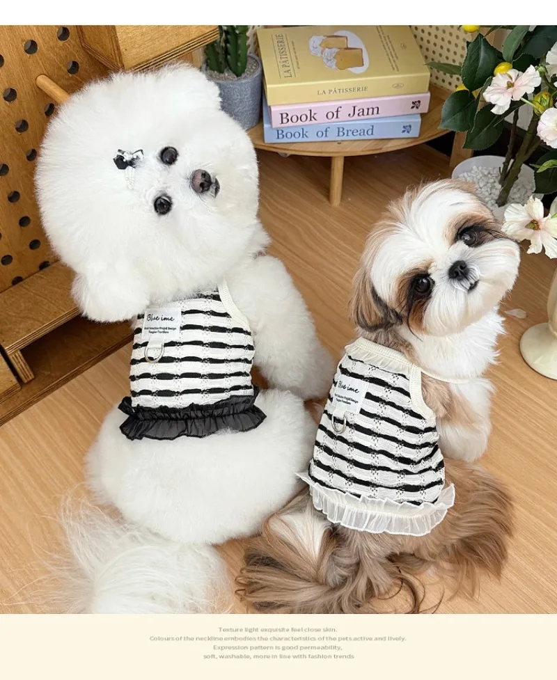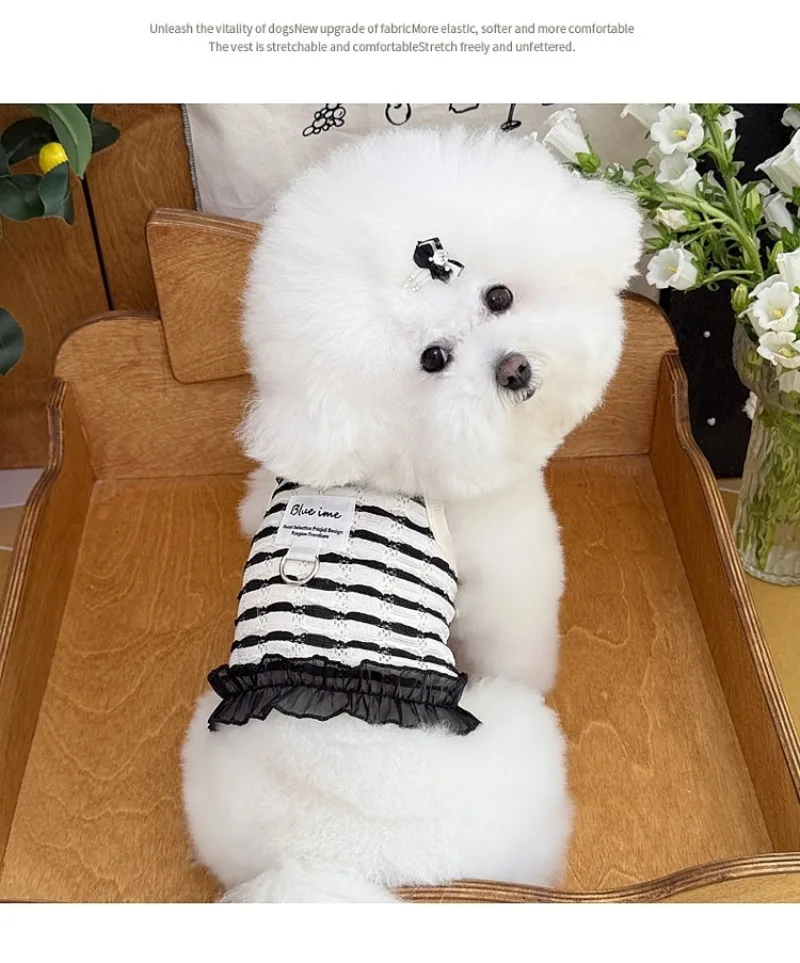 Primavera y verano para perros huecos de encaje blanco y negro tirar hacia atrás corazón perros pequeños gato Teddy ropa para perros chaleco para perros