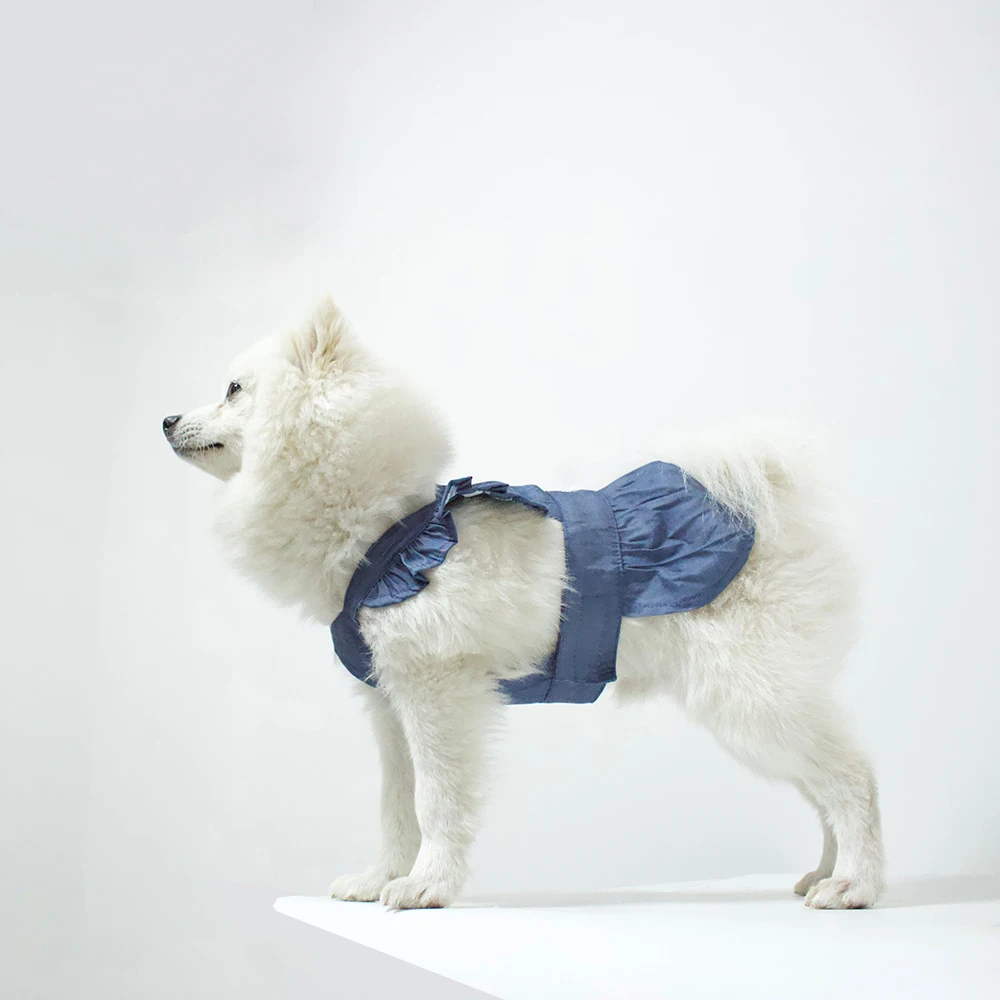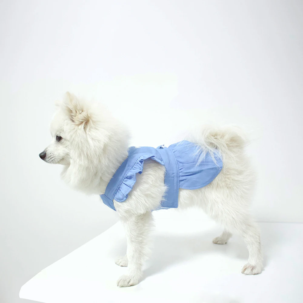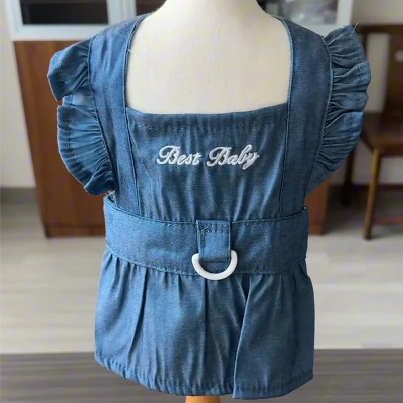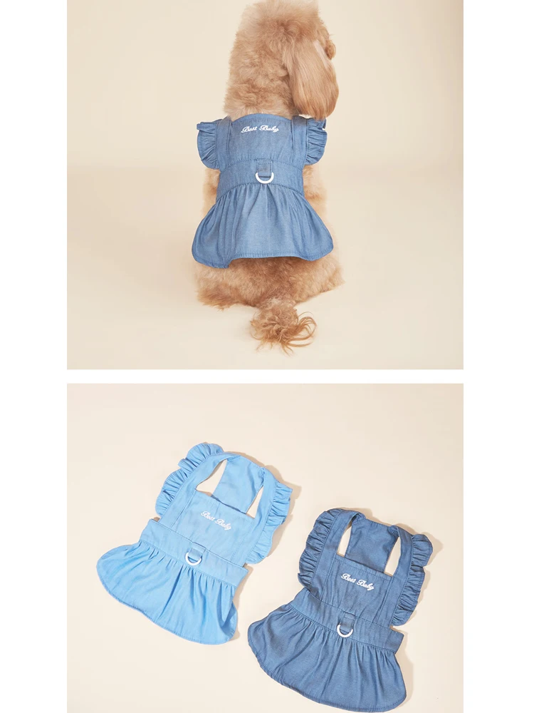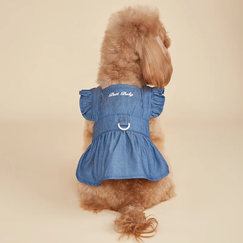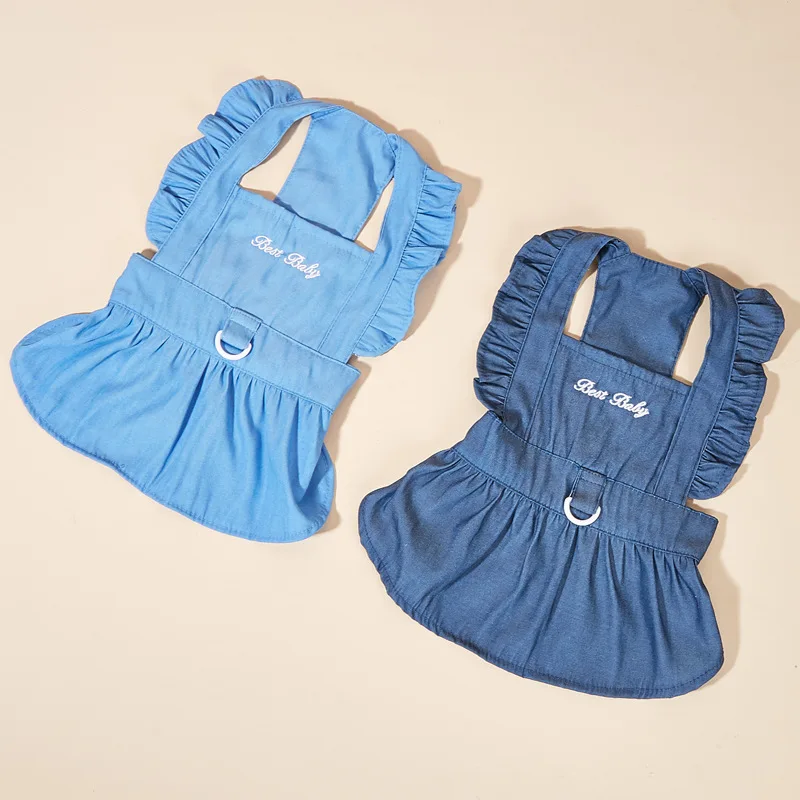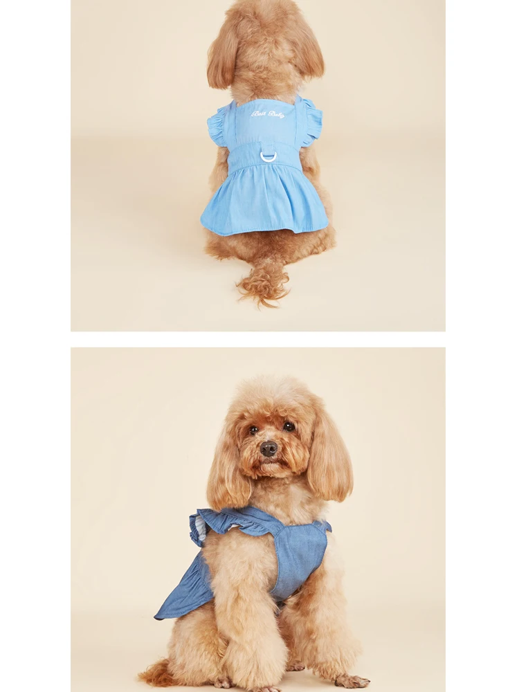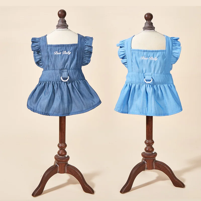 Primavera y verano ropa para mascotas perro dos pies vestido de mezclilla de moda gato perro con hebilla de tracción falda para mascotas