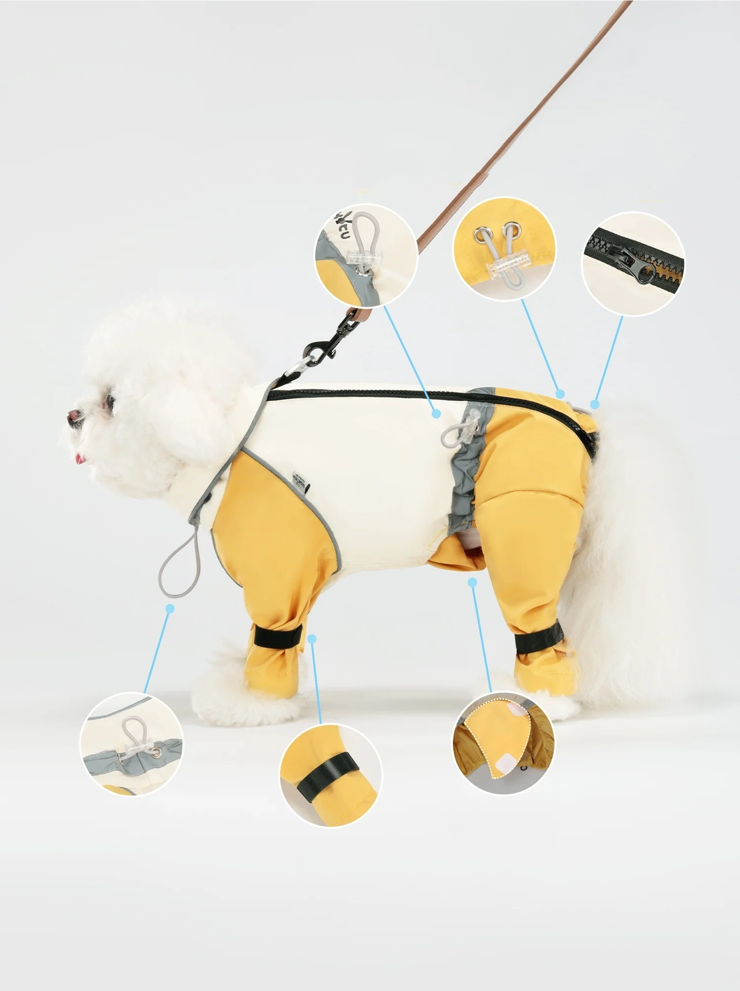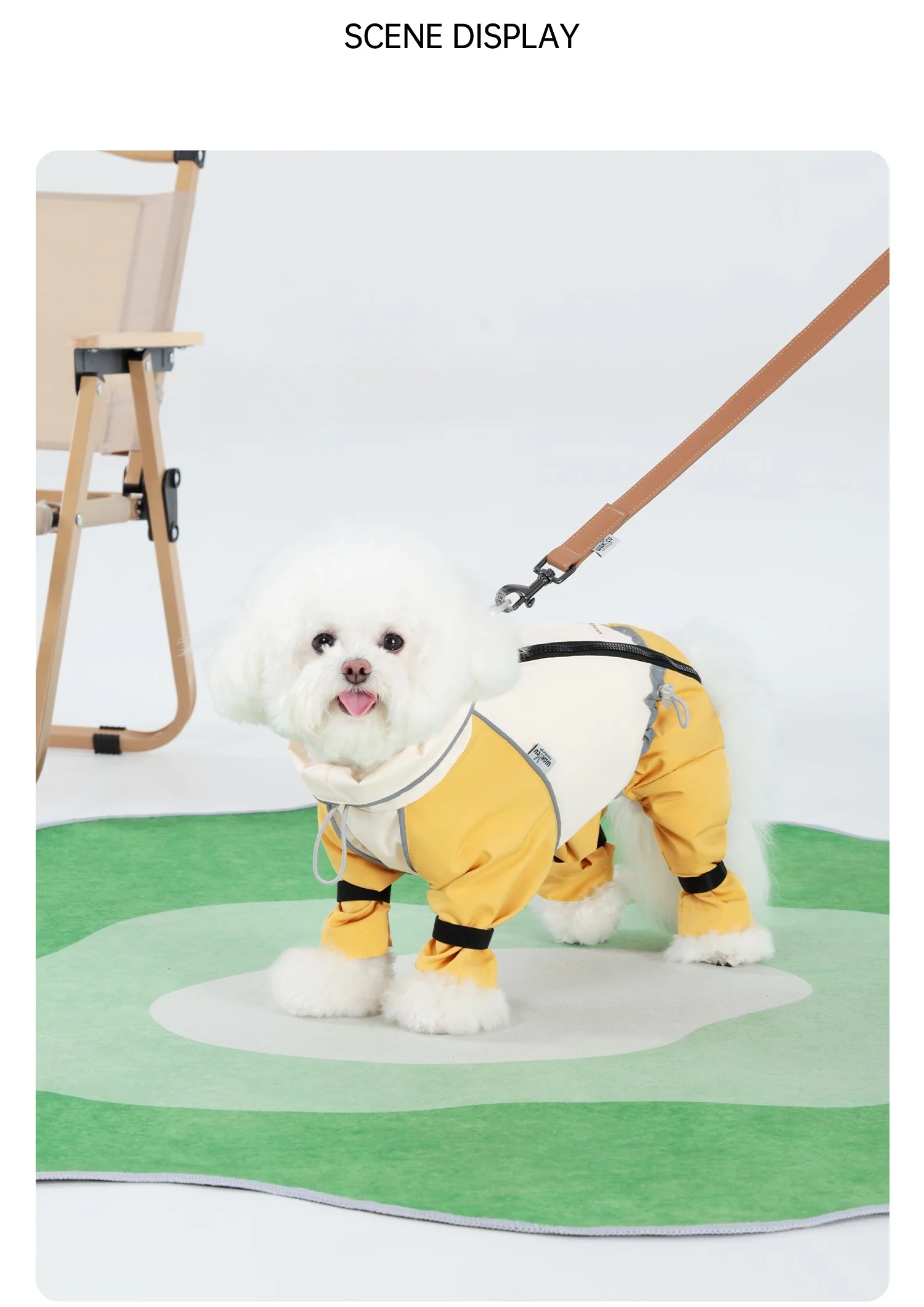 Primavera y verano Ropa para perros de raza pequeña Abrigo a prueba de viento de cuatro patas chaqueta impermeable para perros ropa para mascotas impermeable para perros amarillo