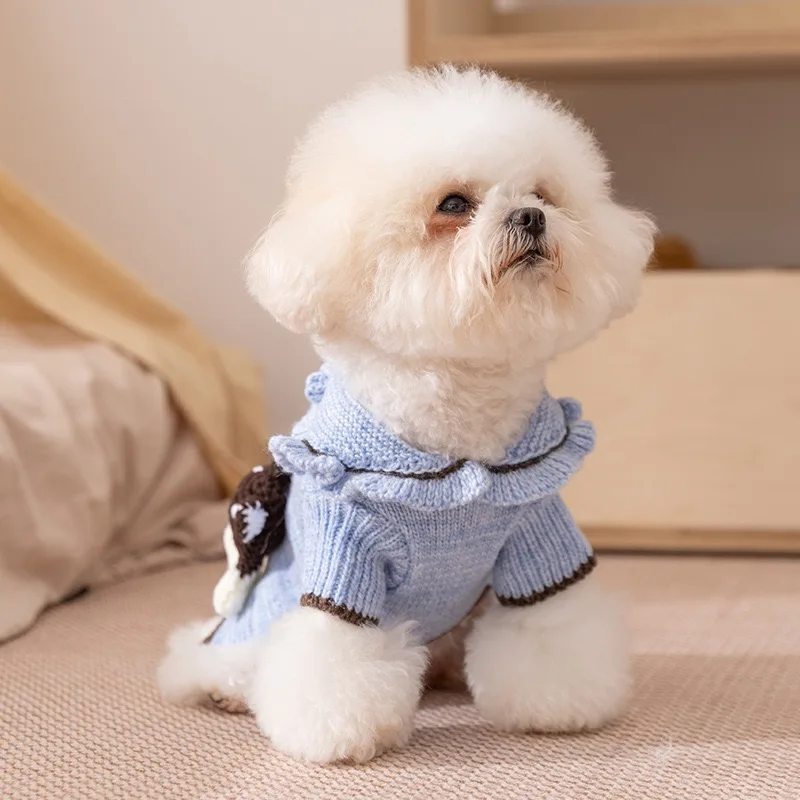 Princess Autumn Clothes for Small Dogs Wool Knitted Breathable Kitten Sweater Overalls Party Cute Yorkshire Medium Pet Clothing