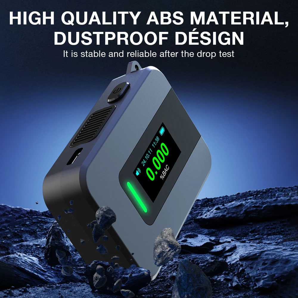 5.Construcción robusta:Hecho de material ABS de alta calidad, este probador de alcohol aliento profesional presenta un diseño resistente a caídas y al polvo con una carcasa resistente.Incluye una nueva batería de grafeno para una energía duradera y admite carga rápida tipo C.
