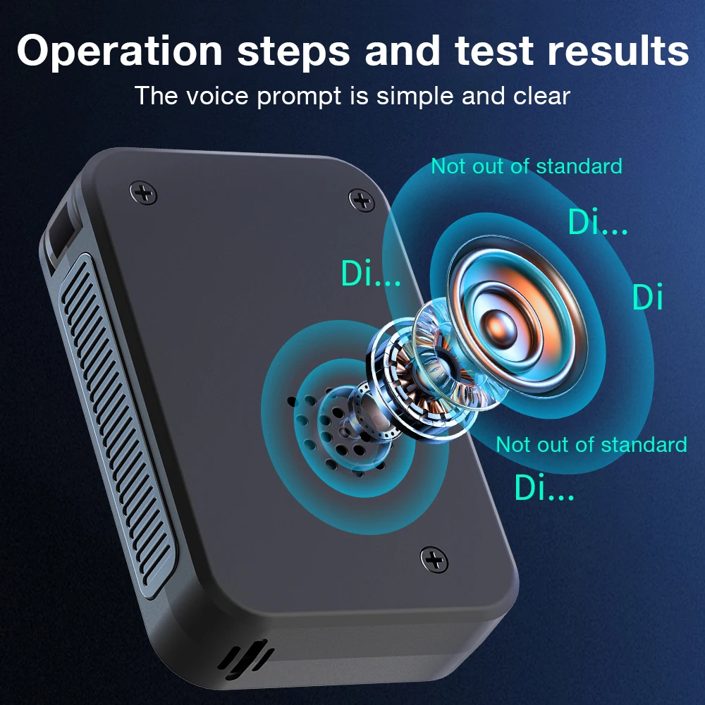 3.Modos de prueba versátiles:Equipado con modos de detección rápidos y precisos, este alcoholímetro sin contacto ofrece pruebas higiénicas y sin contacto para múltiples usuarios, lo que lo convierte en una herramienta versátil para diversos escenarios.