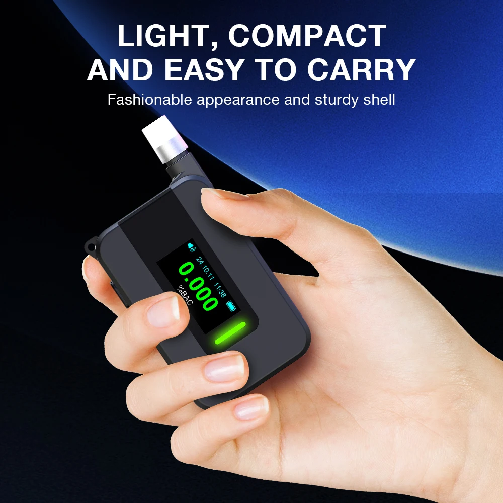 4.Portátil y ligero:Diseñado para ser liviano y compacto, este alcoholímetro electrónico sin contacto es fácil de transportar, lo que garantiza que pueda llevarlo a cualquier lugar que necesite.