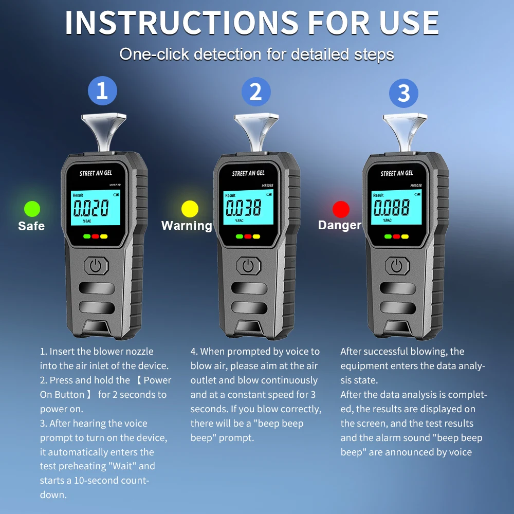 Probador de alcohol con pantalla LCD con transmisión de voz Detector de alcohol soplado portátil Verificador de conducción borracho para uso personal policial