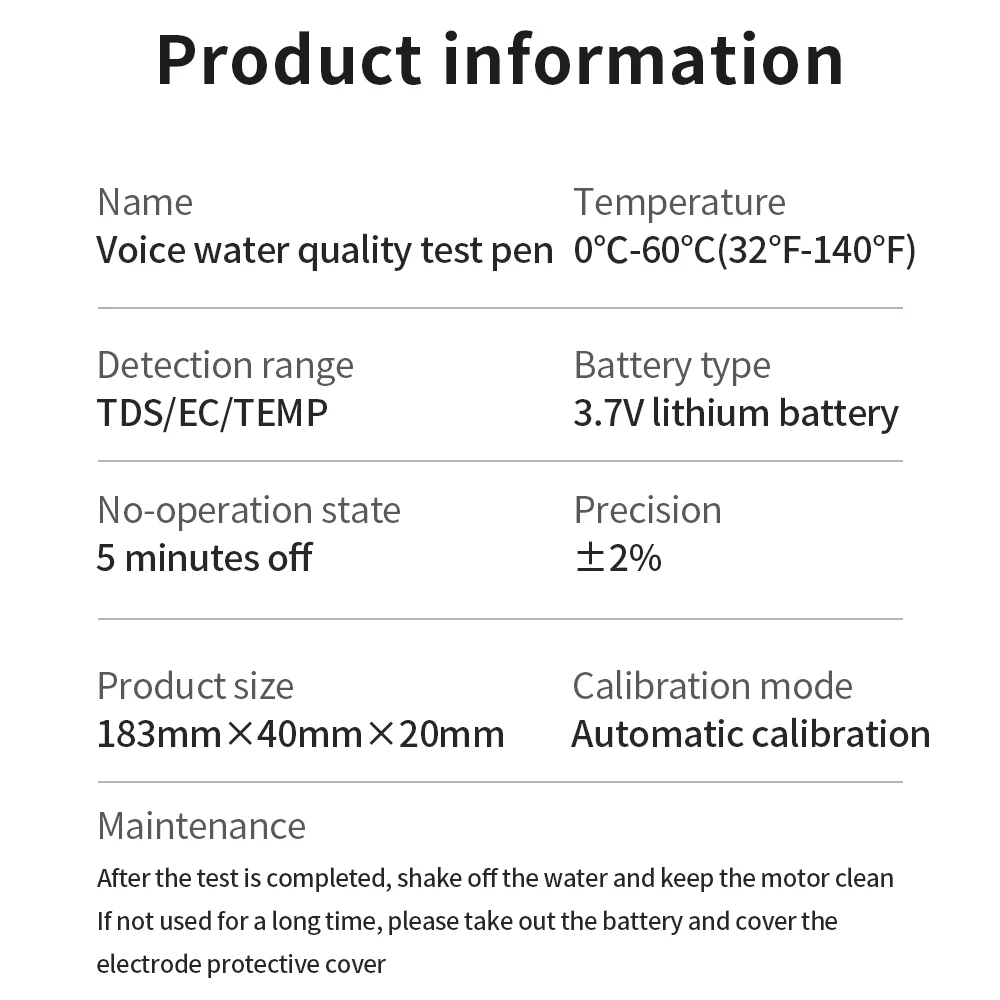 Rango de temperatura: 0-60℃/32-140℃Todas las lecturas son sensores de compensación automática de temperatura, que son más rápidos y precisos que el contacto directo con la solución que se va a medir.Mantenga presionado el botón Hold/Temper para convertir°C/°F