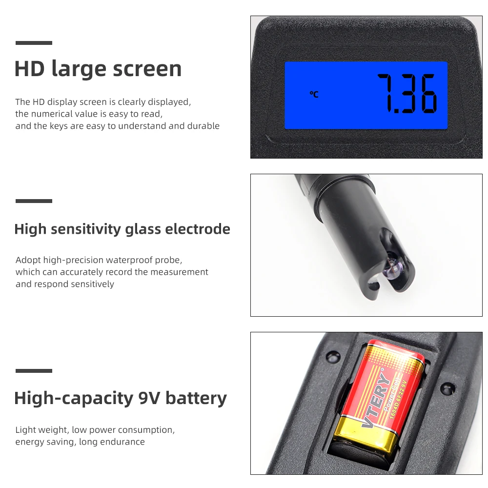 IC importado, rendimiento de alto costo y alta resolución (0,01 pH), la sonda del electrodo se puede reemplazar.