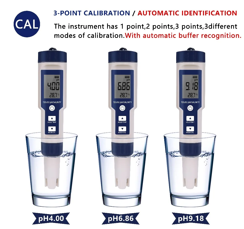 Conductividad EC: admite identificación automática de calibración de 3 puntos (1413us 12,88 MS y 111,8 ms) con 3 puntos de calibración (1413uS/cm 12,88 mS/CM 111,8 mS/CM)